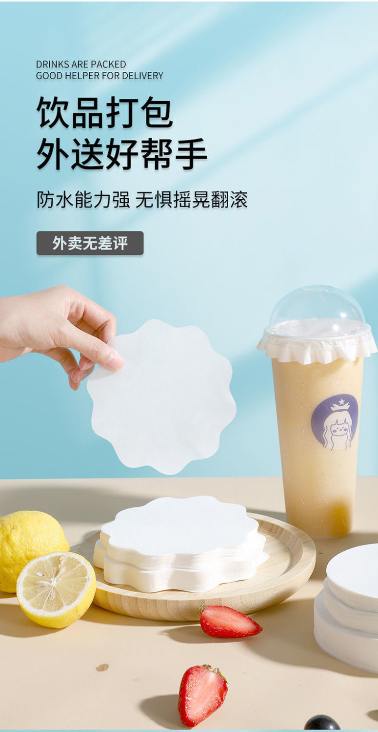 メーカー直販、ミルクティー防漏紙の出前包装コーヒー紙マット防漏紙使い捨て封口膜シール紙