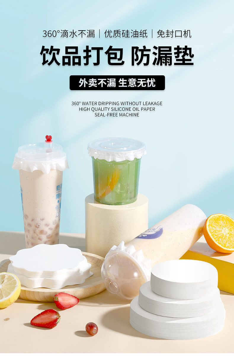 奶茶防漏纸一次性封盖纸咖啡打包塑料杯密封垫片外卖封口膜防溢纸