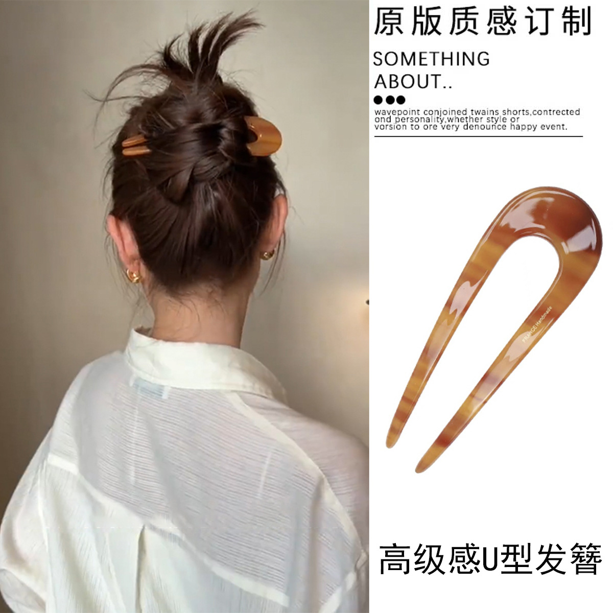 ゆるい雰囲気~中国風高級アセテートU字型ヘアピン、ボールヘアピン、後頭部ヘアピン、ヘアアクセサリー