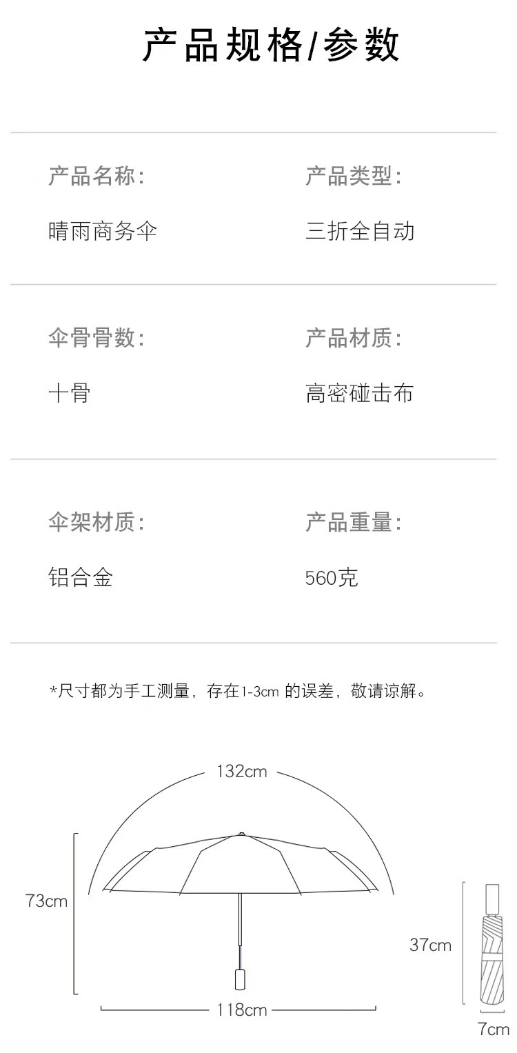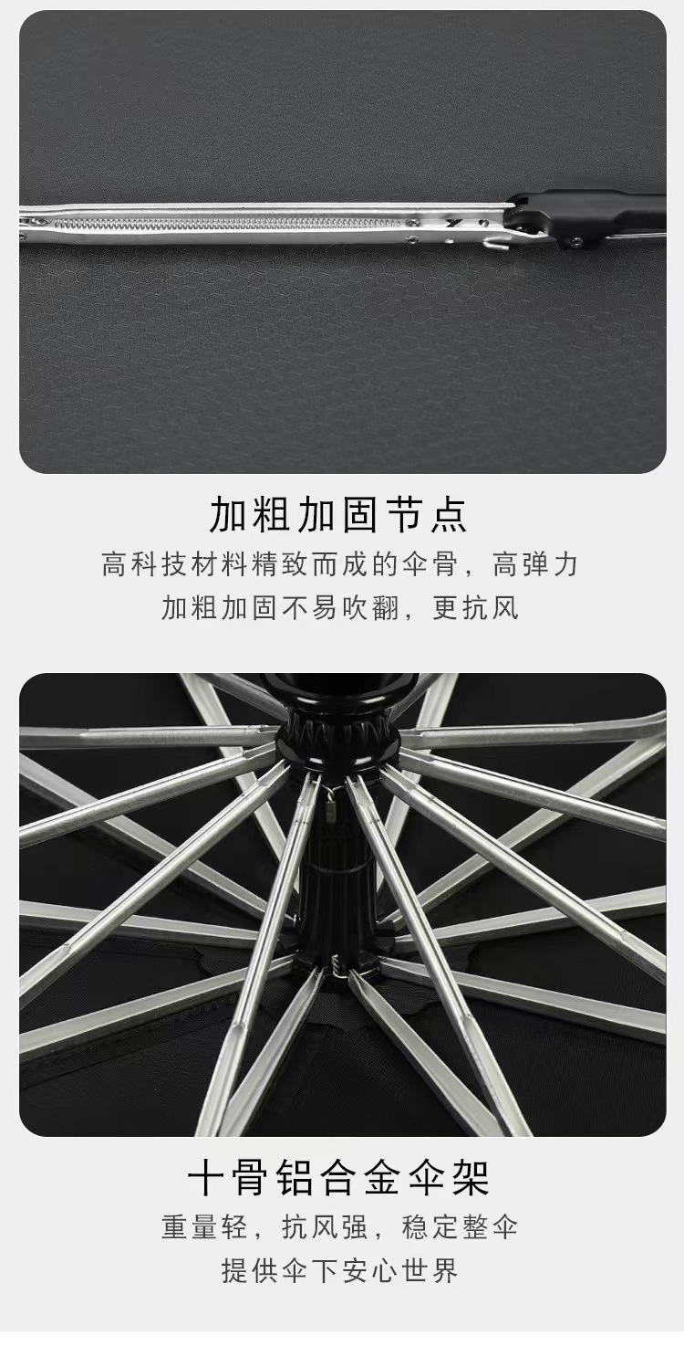 32骨全自動傘双龍骨黒ゴム傘晴雨両用耐風増厚純色ビジネス日除け三つ折り傘
