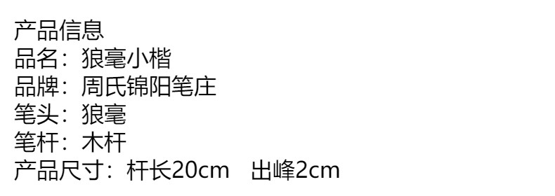 仕様 紅杆狼毫小楷 (こうかんろうひょうしょうかい),黒軸狼毫小楷筆