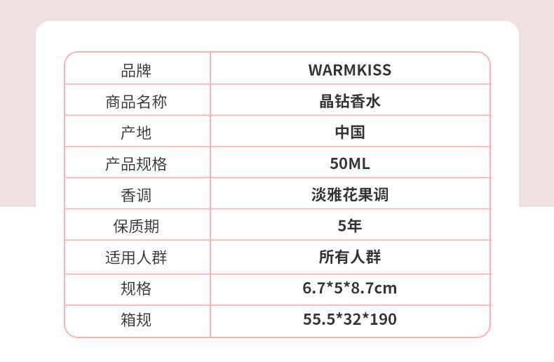 WARMKISS水晶結晶ドリル女性持続清新花果香淡香水卸売り代理工場