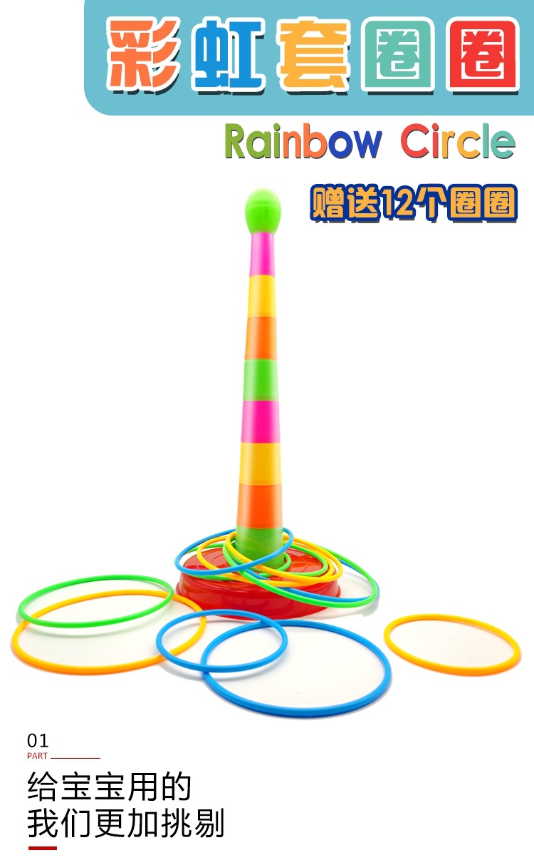 プラスチックの輪投げのおもちゃの輪投げの子供は輪を投げます。