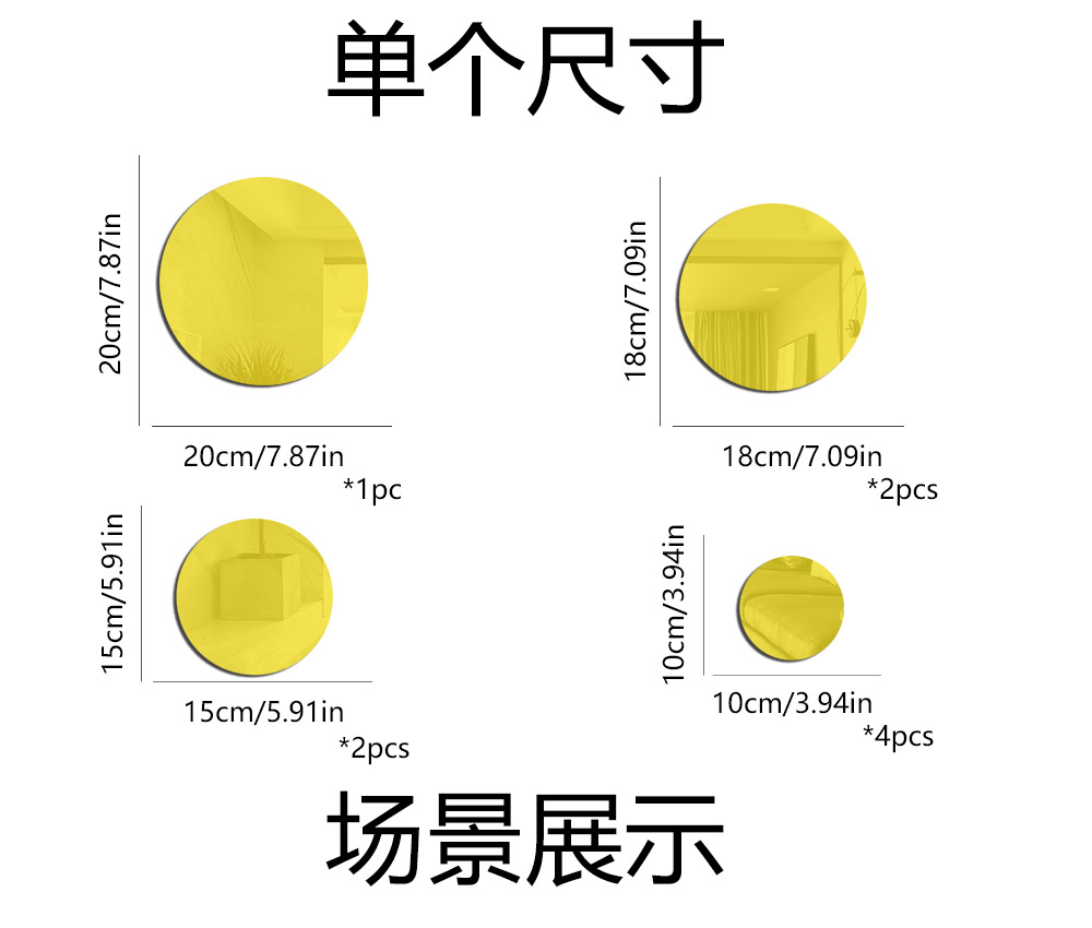 Jm3246クロスボーダー爆型円形鏡面壁貼り3d立体アクリル壁貼りリビングルーム寝室装飾