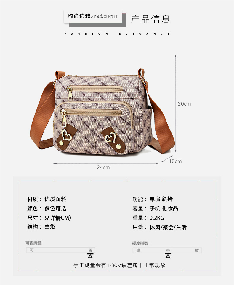 2025 レディース新大容量多層ショルダークロスボディバッグ多用途プリントレディースバッグママ中年ファッション