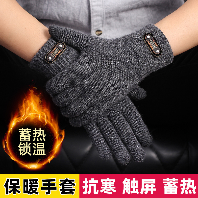 秋冬メンズ防寒厚く暖かいニット手袋ウールプラスベルベットタッチスクリーン露出二本指サイクリング学生手袋