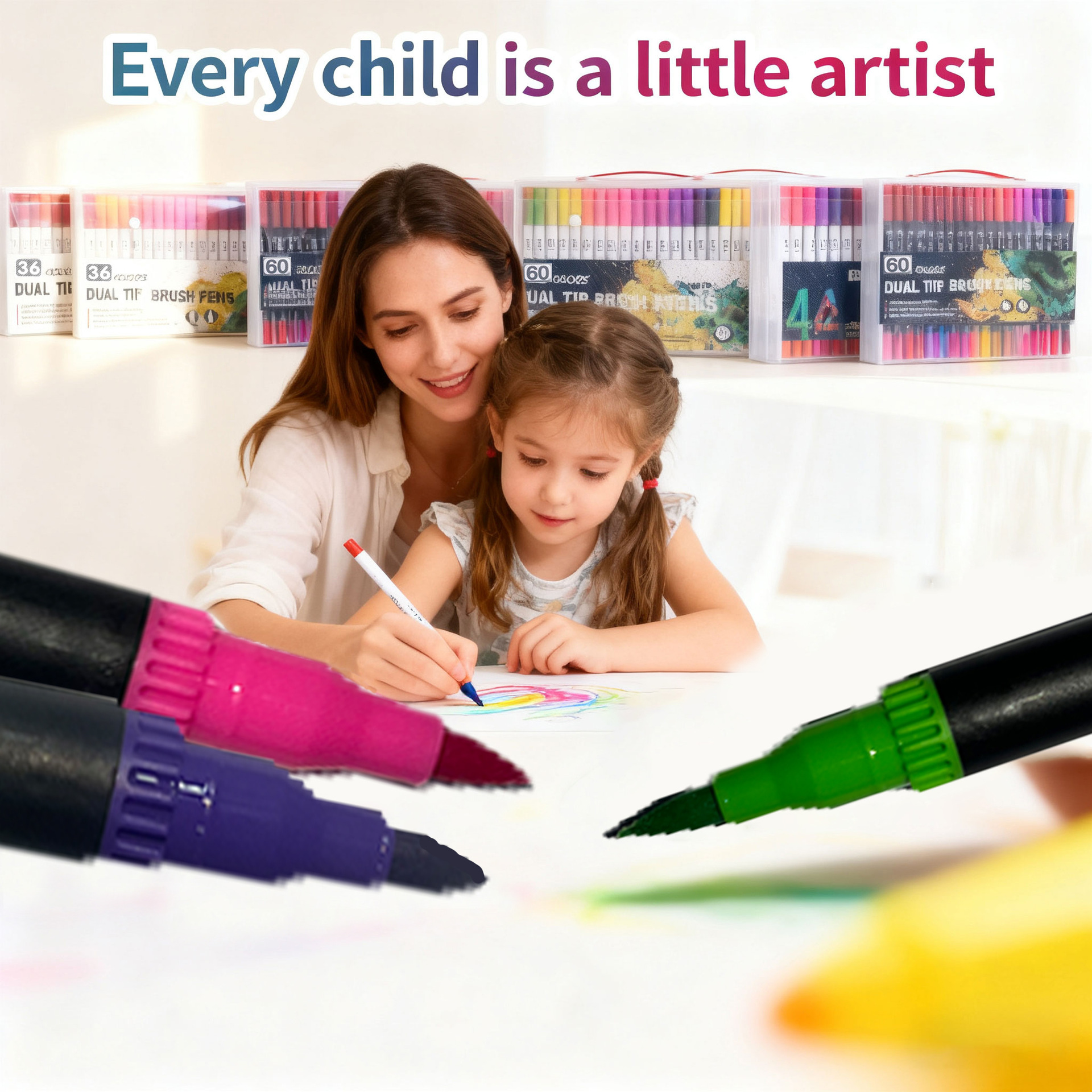 ソフトヘッドダブルヘッド水彩ペン12-120色セットカラー線筆サインペン学生美術絵画線筆