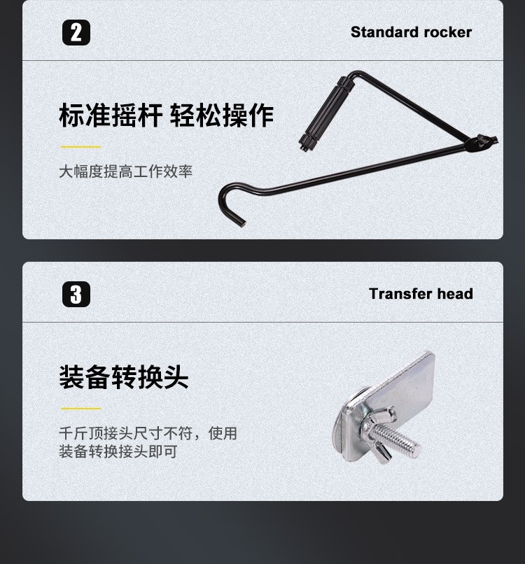 型番 ジャッキ省力レンチ (単独レンチ),ジャッキ省力レンチ + 変換ヘッド,ジャッキ省力レンチ + 収納袋,ジャッキ省力レンチ + 変換ヘッド + 収納袋,ジャッキ汎用ジョイスティック,ジャッキ汎用ロッカー + 収納袋
