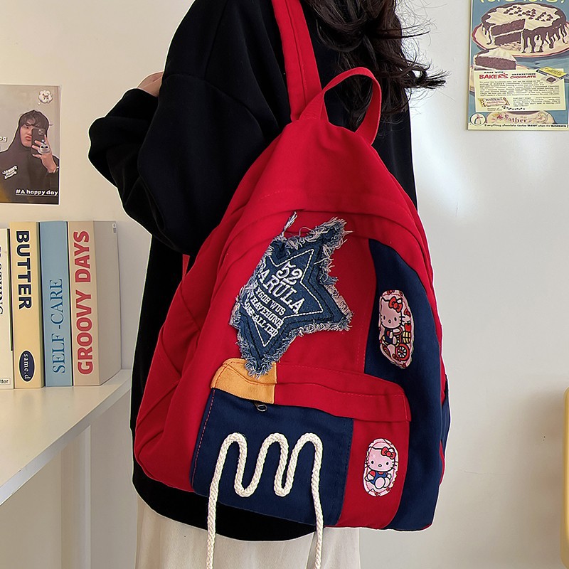 哈喽很够辣手作双肩包复古大容量y2k拼接卡通包包校园学生