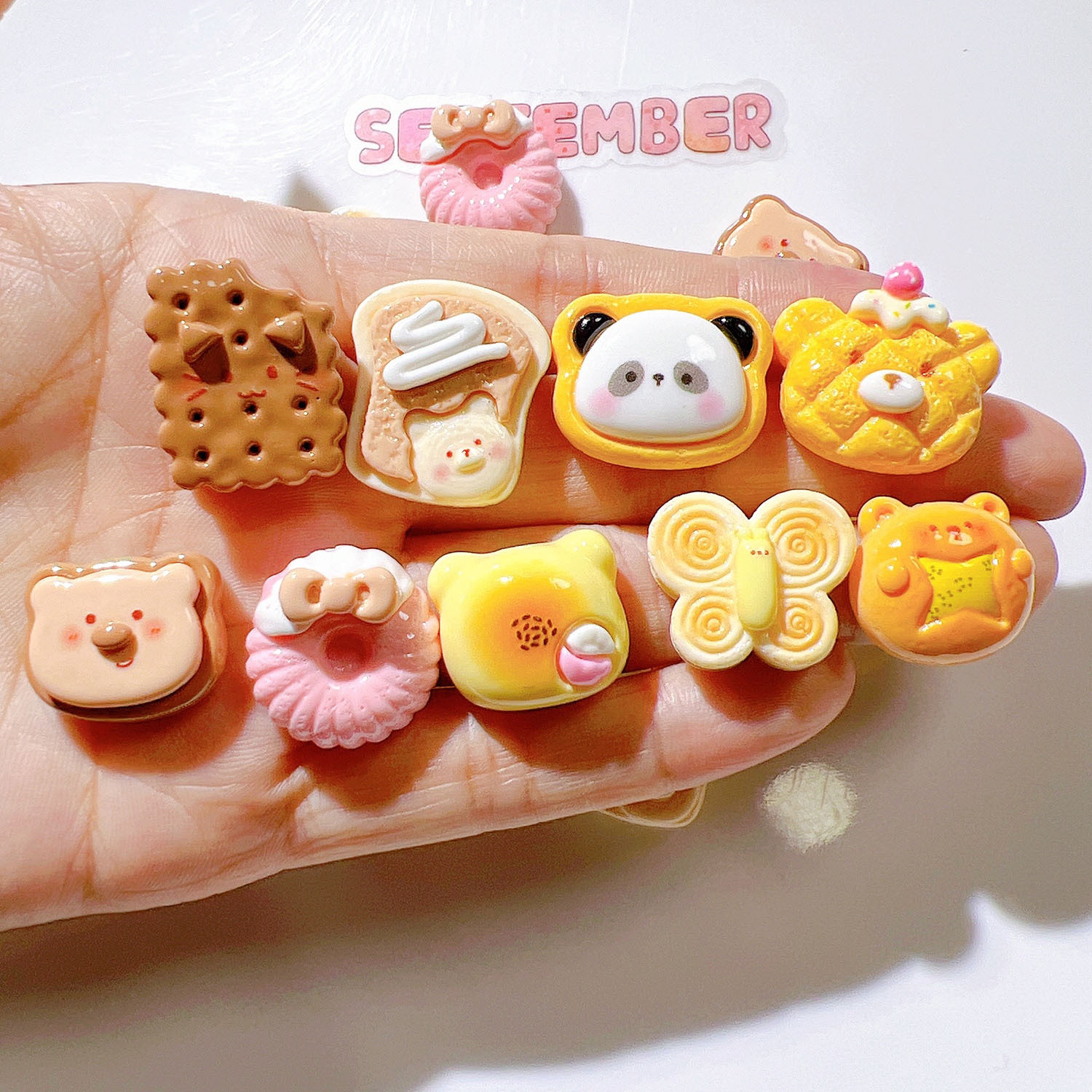 多色の蝶結びの漫画のクリームのゴムはアイデアの靴のボタンの材料の樹脂の部品のdiyの装飾品のヘアピンを飾ります。