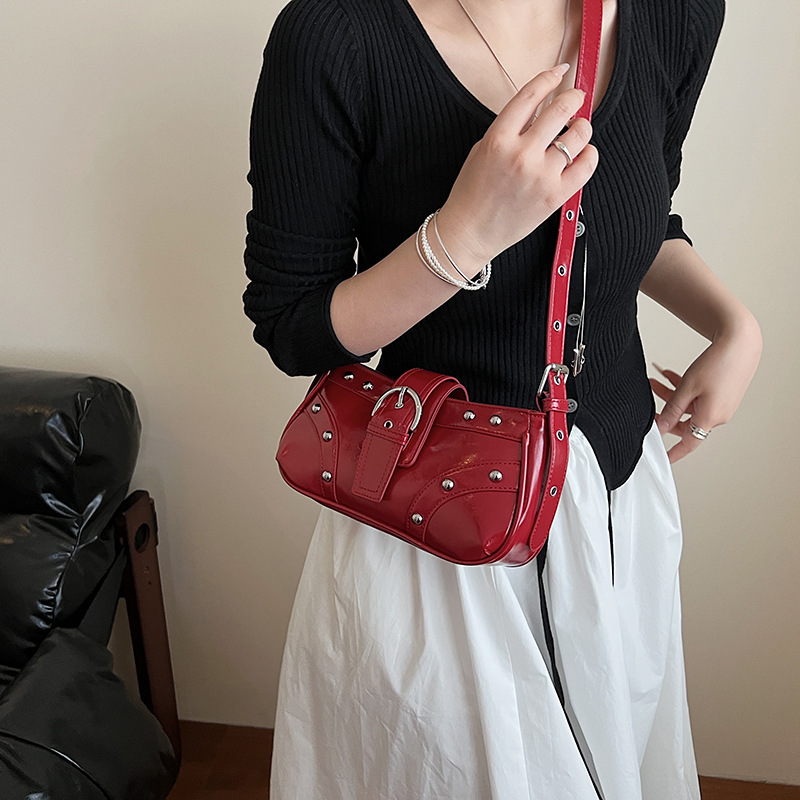 欧米風レトロセクシー女子バイク風ショルダーバッグ女性向けニッチサブカルチャー越境ファッション脇下バッグトレンド新作