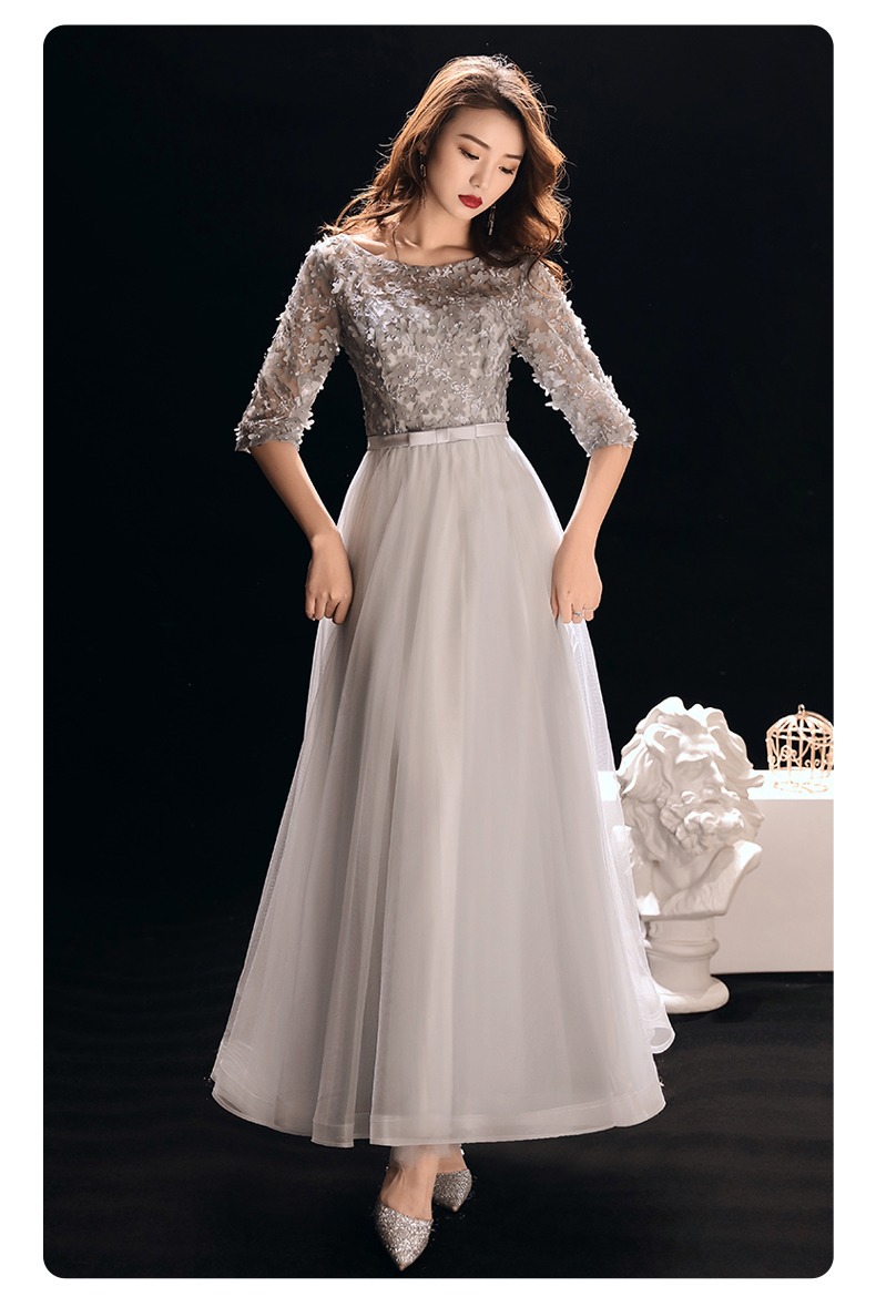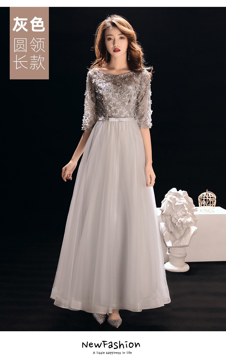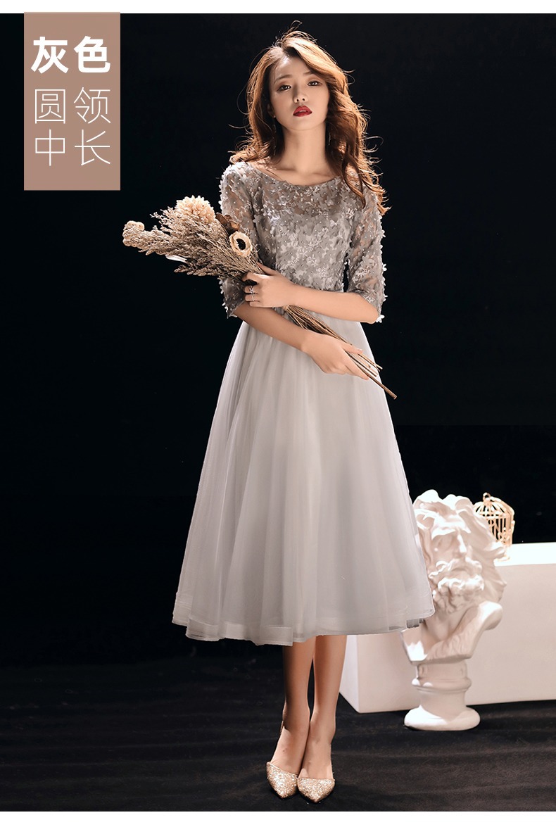 ブライズメイドドレス ミディアム丈 2025年新作 冬 グレー シスタードレス ブライズメイドグループ イブニングドレス スリムフィット イブニングドレス