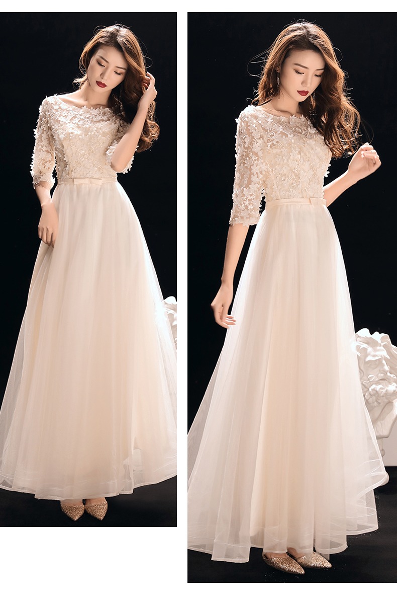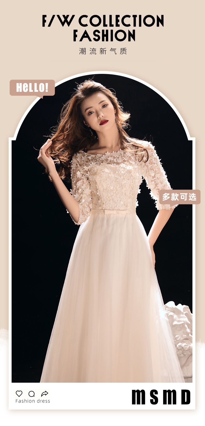 白いドレスのスカート2025の新しいフランスのサテンの領収書の登録は結婚披露宴の軽い糸の成人式のパーティーのドレスを予約します。