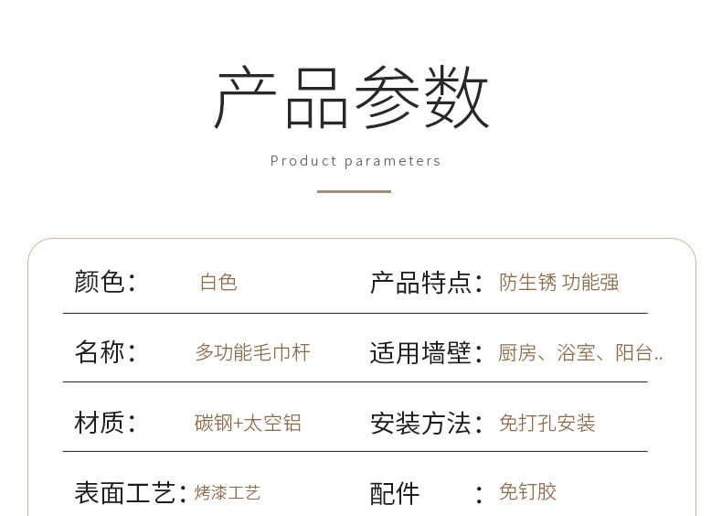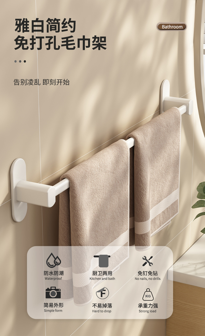 穴を開けない浴室タオルラック浴室壁掛けバスタオル収納ハンガートイレ無痕貼りクロスボーダー専用タオルバー