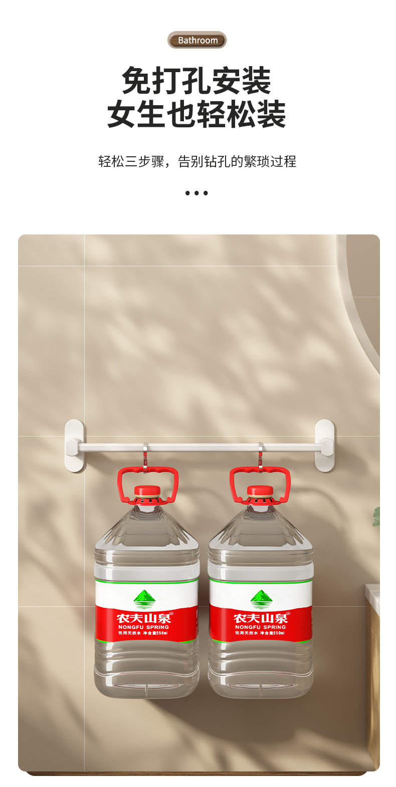 穴なしトイレタオルラック壁掛け式物置棚浴室タオル単棒トイレ収納ハンガー