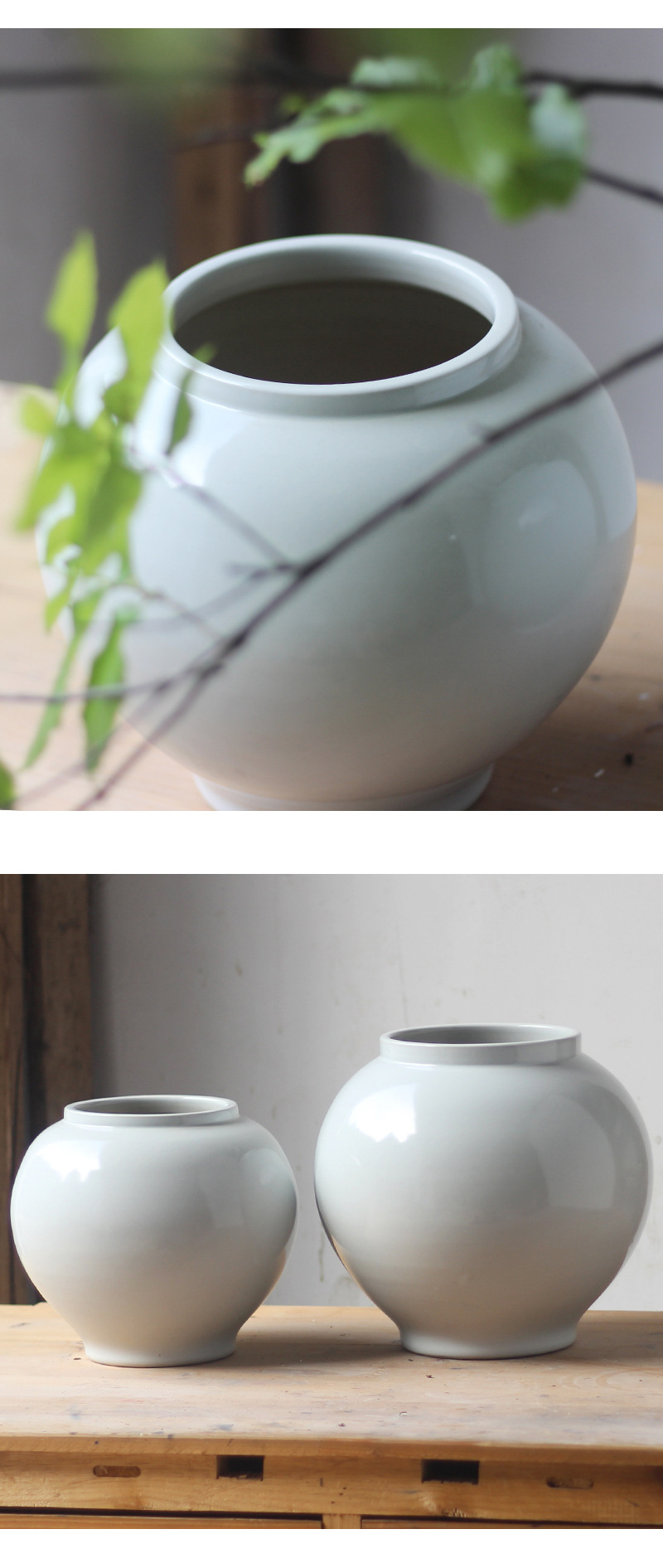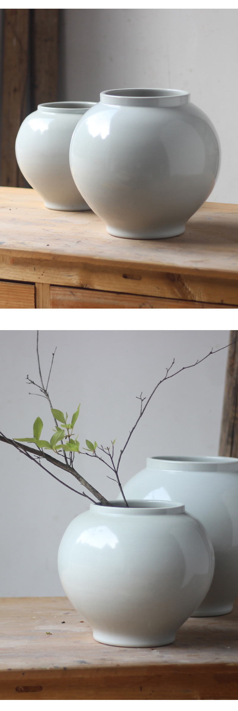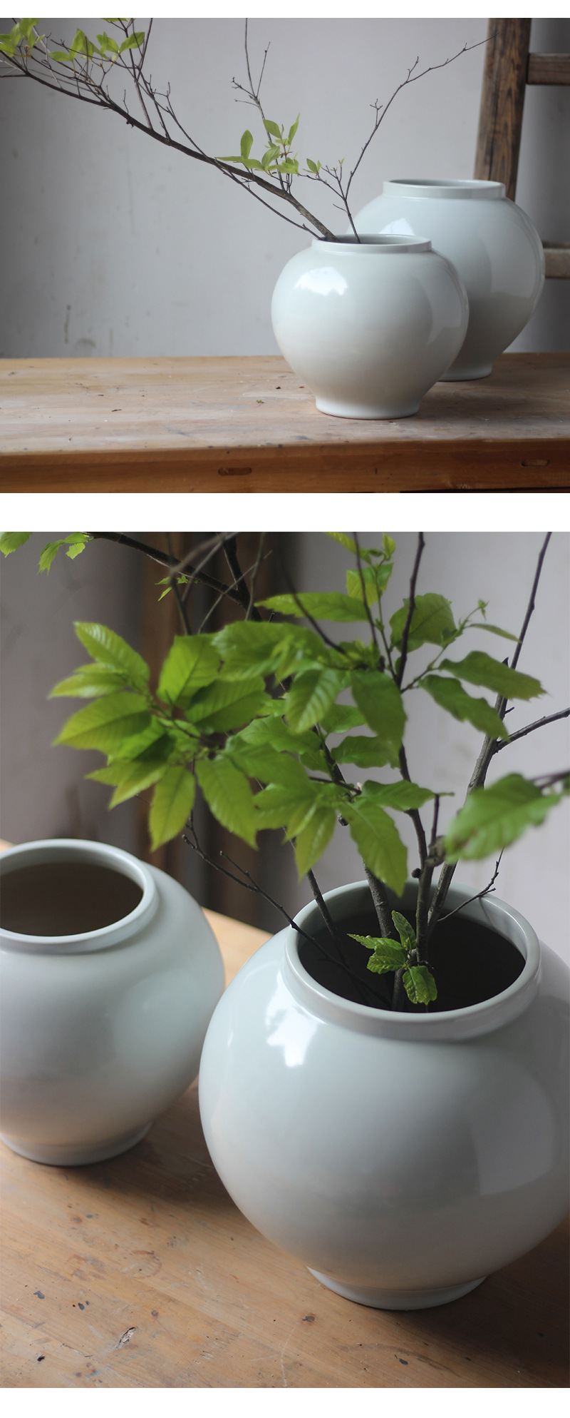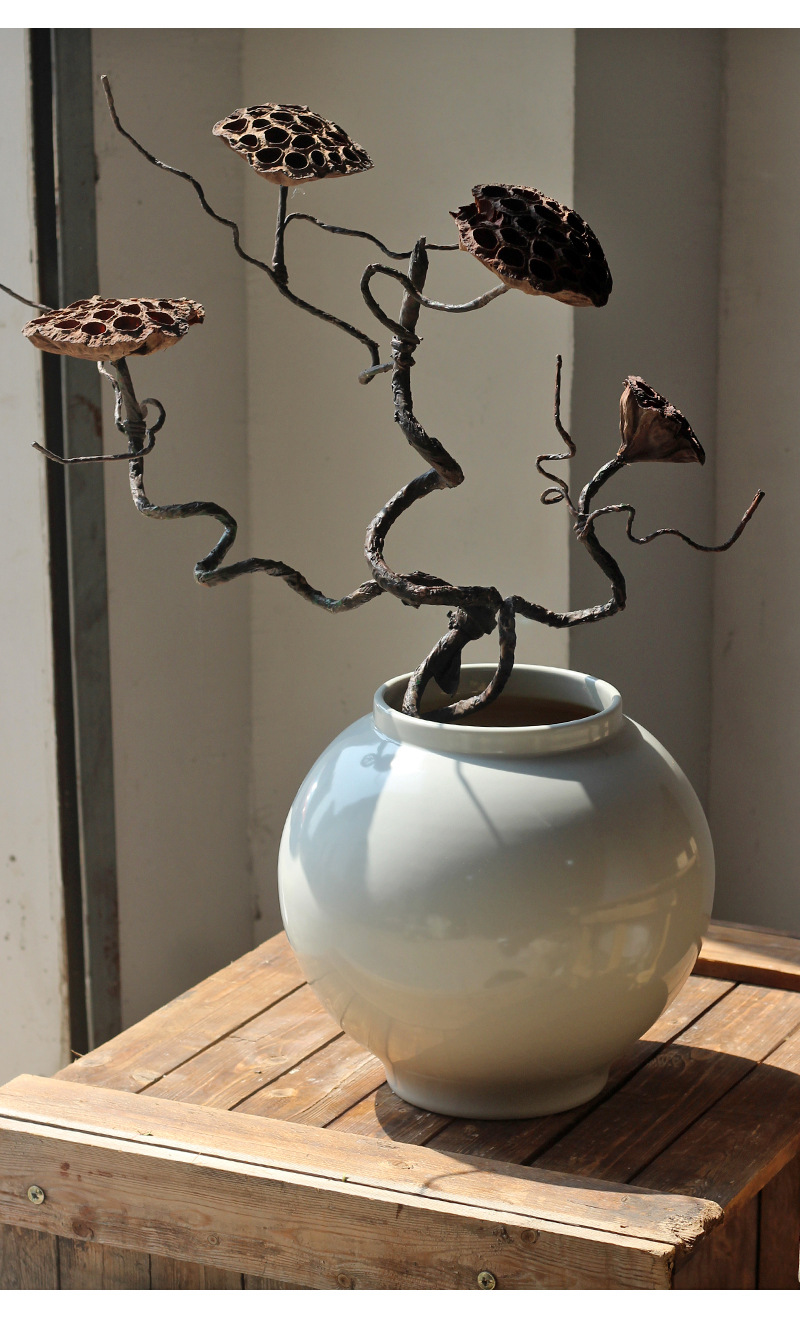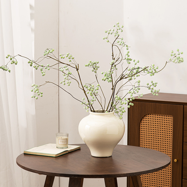 白い丸い花瓶高級感置物リビング生け花器レトロ粗陶月缶民宿禅意装飾