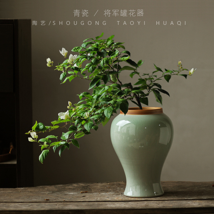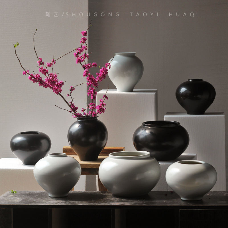 日本式陶磁器花瓶ins風客間生け花飾り月缶高級感寂新中国式禅意置物