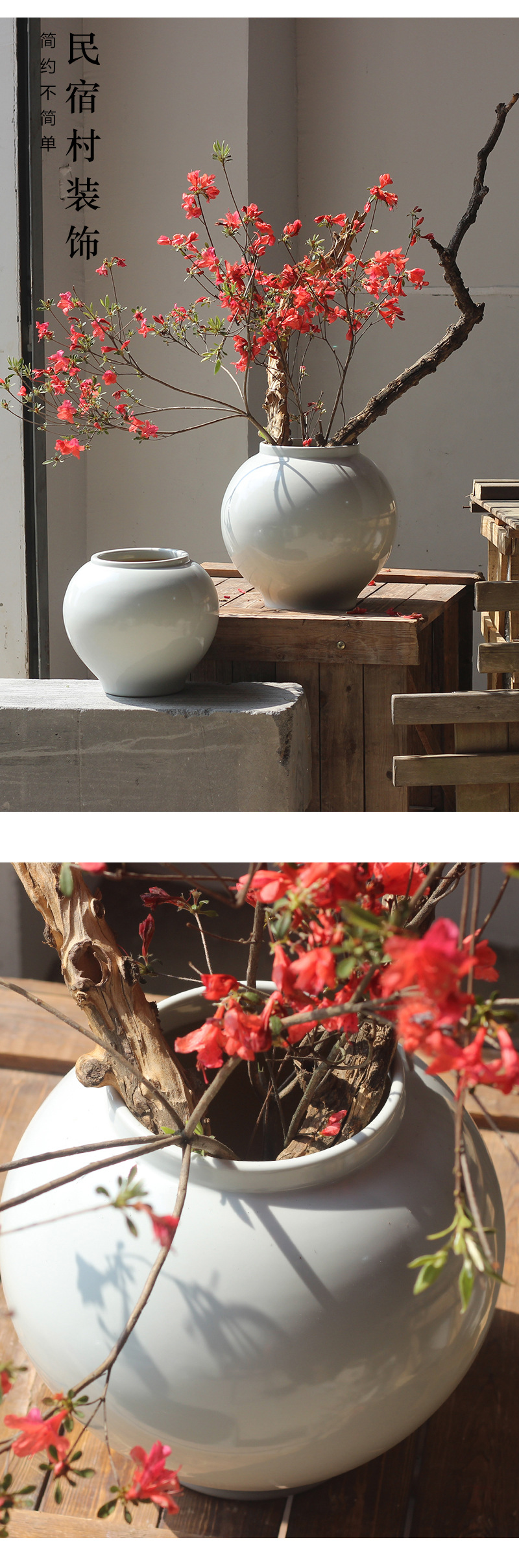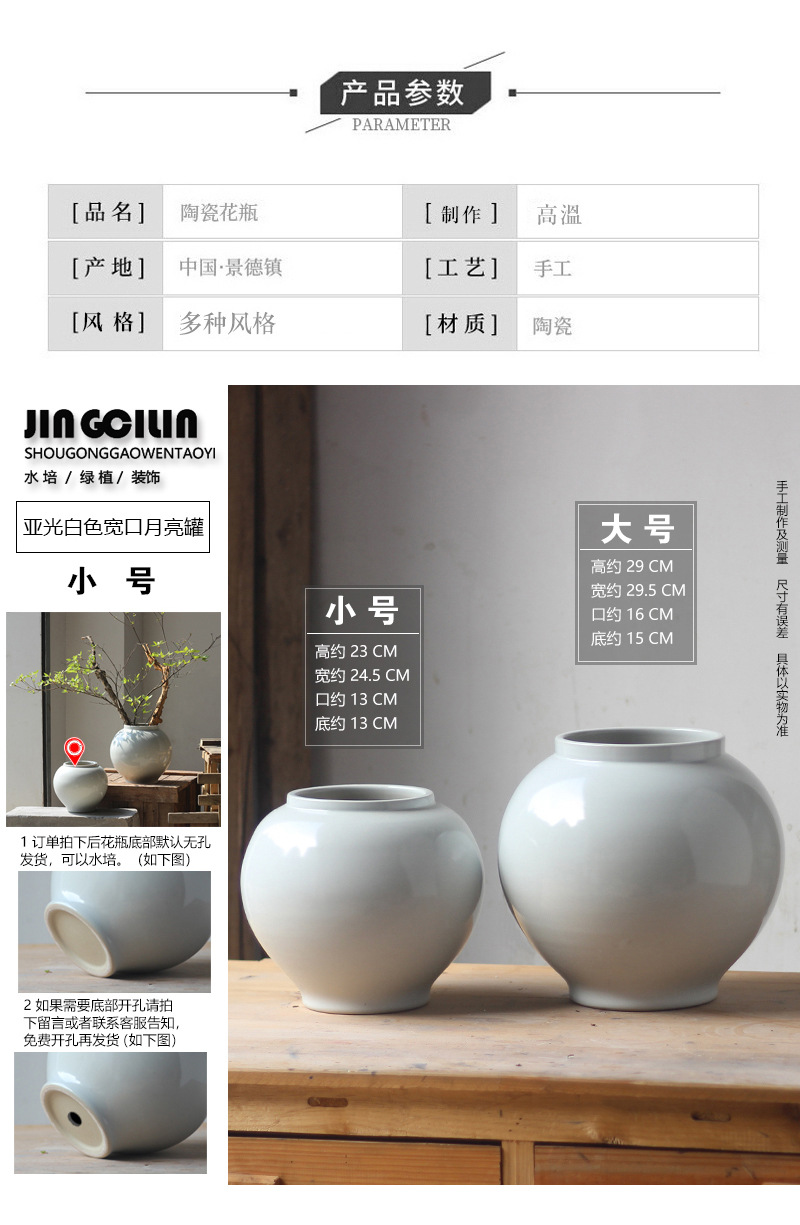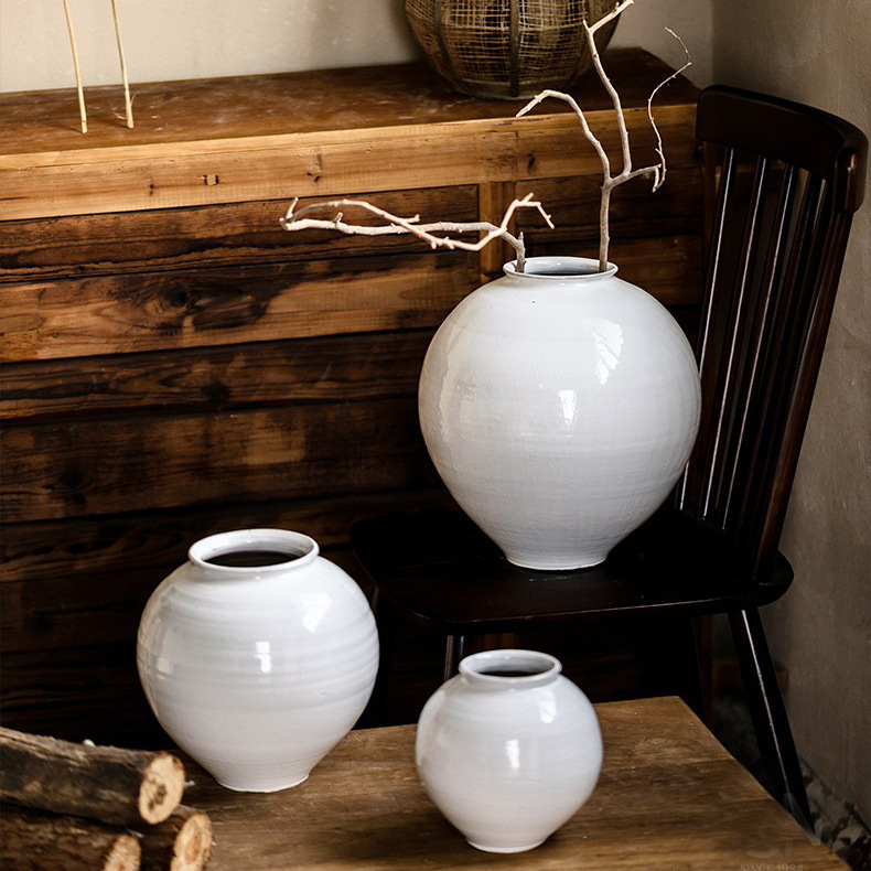 白い花瓶の置物客間生け花水培花器レトロ粗陶缶月亮瓶民宿禅意装飾品
