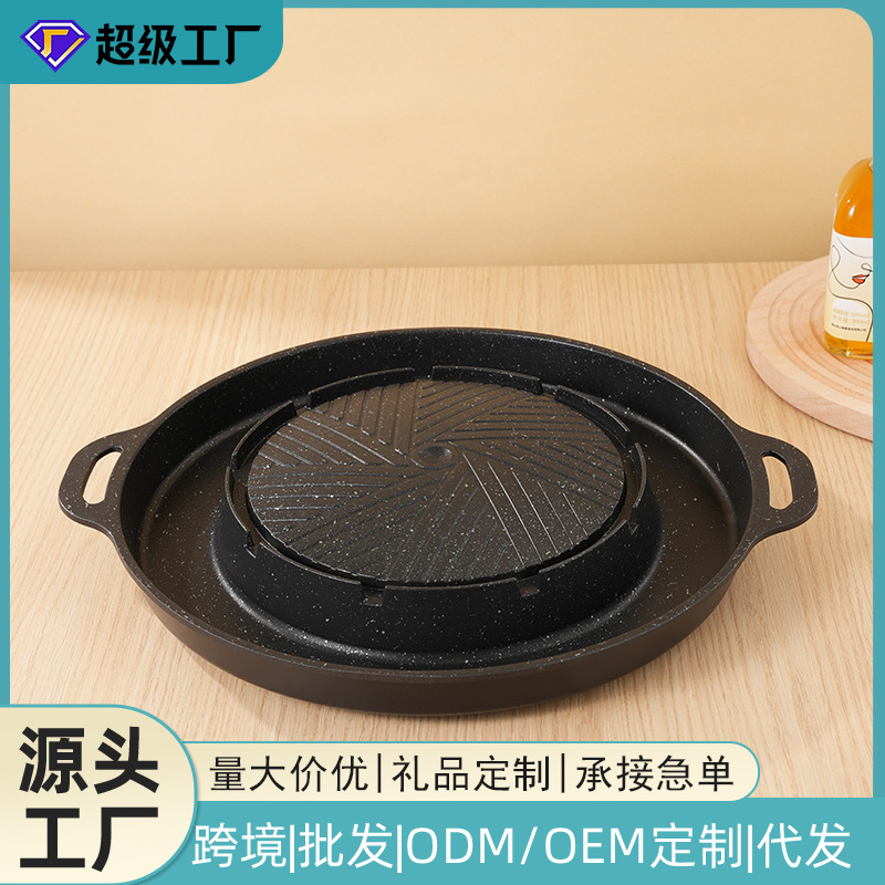 家庭用朝食二合一フライパン多機能分離ステーキストライプフライパンは鍋にくっつかないフライパンで卸売りします。