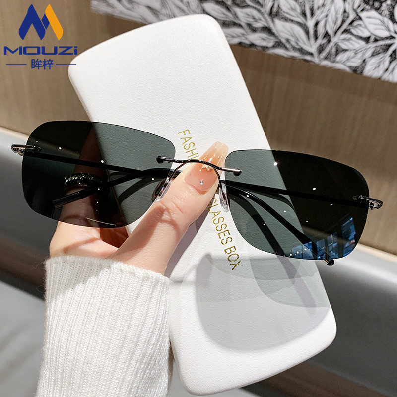 偏光サングラスメンズ新型高級感エッジカット縁なしメガネレディース紫外線防止小さい方枠運転サングラス