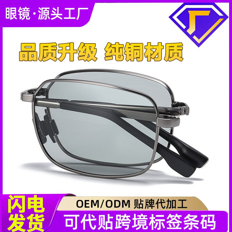 欧米風ファッション偏光メンズ調光サングラス運転用夜間視力メタルフレームスクエア型クロスボーダーサングラス