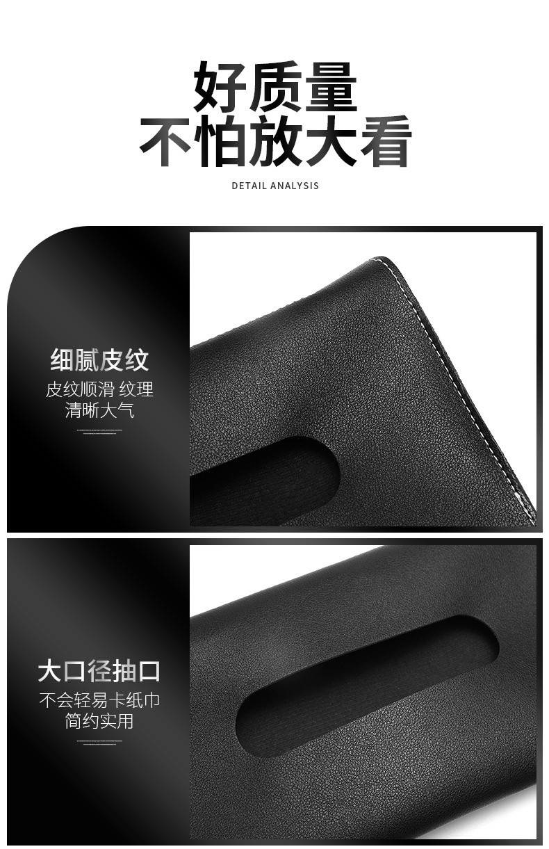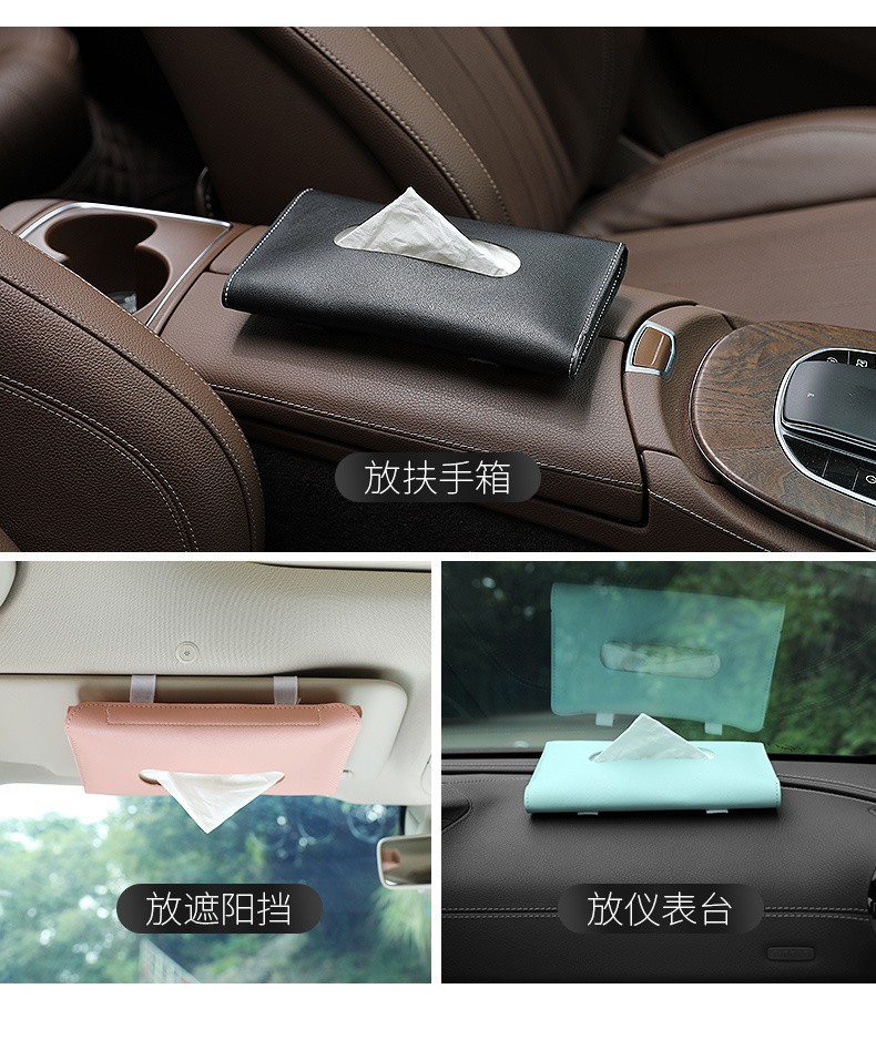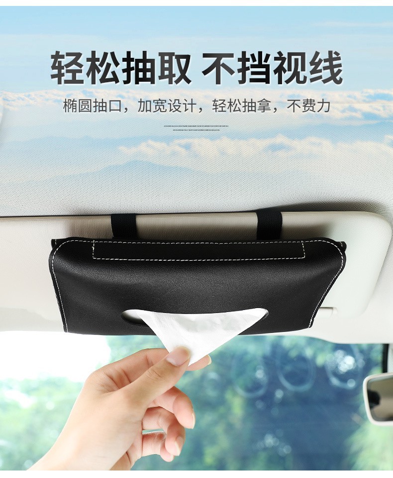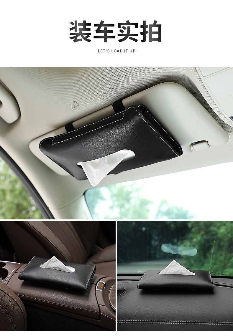 車用ティッシュバッグ革の車のティッシュは背もたれの車内に掛けられています。
