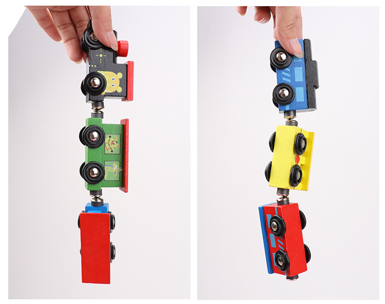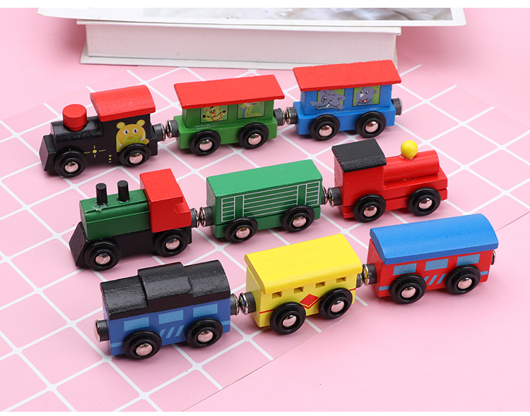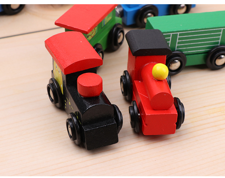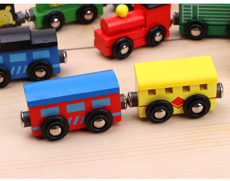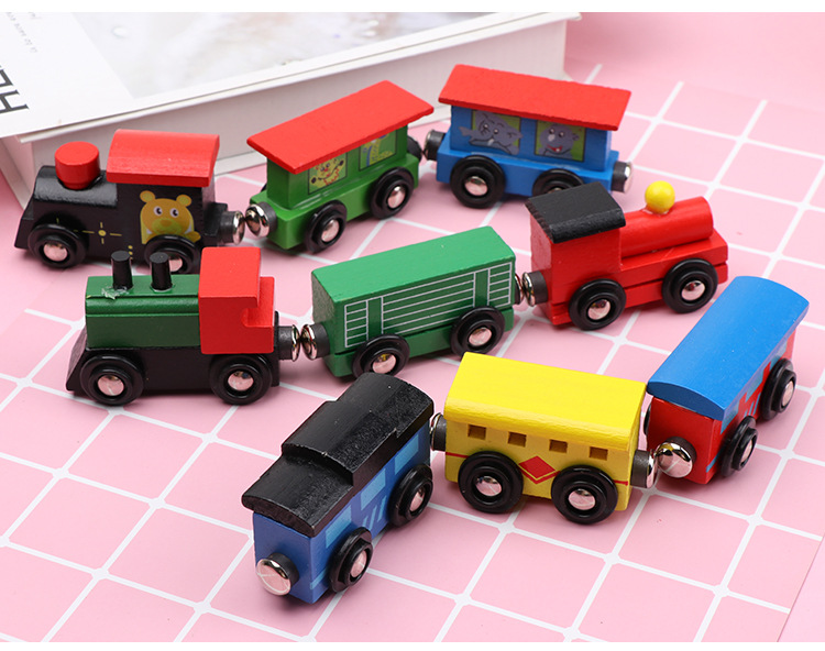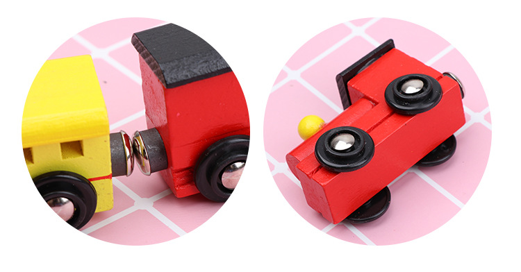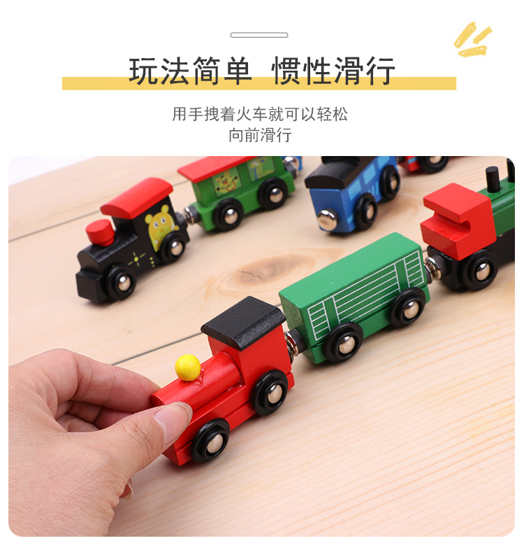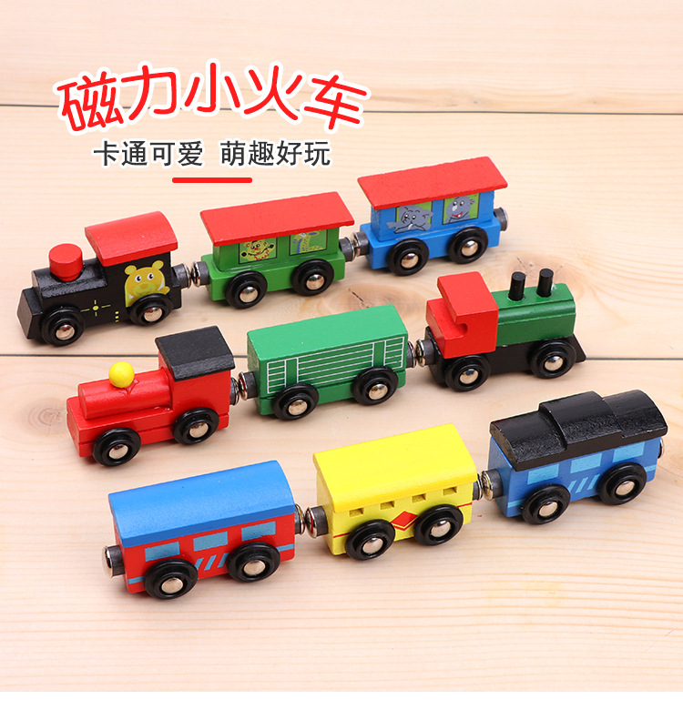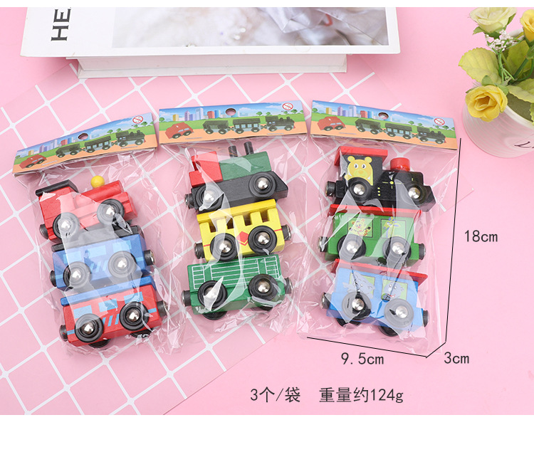 子供の漫画教育マグネットスプライシングおもちゃ木製塗装 3 セクション磁気列車無軌道木製ミニ火災