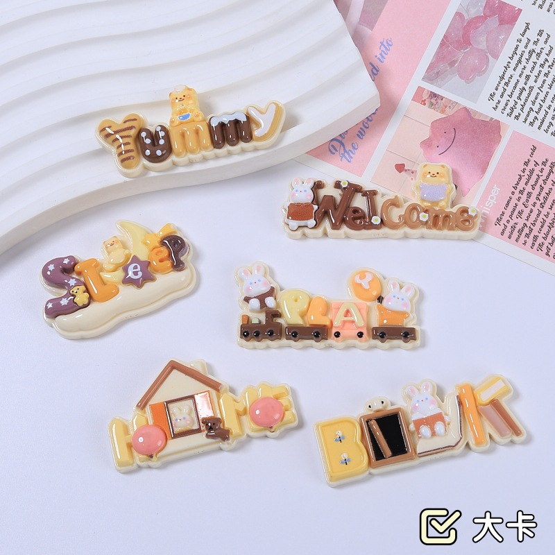 大きいサイズのカレー色の家の字の札の漫画のdiyの髪飾りのクリームのゴムの高級感のアクセサリーは樹脂の部品を飾ります。