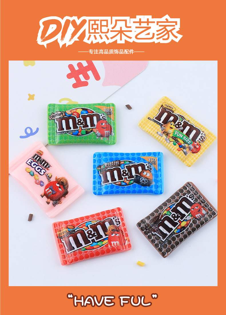 巧克力夹心M豆食玩卡通diy饰品配件奶油胶树脂小配件洞洞鞋扣材料