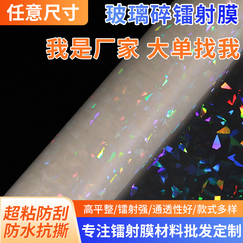 厂家供应镭射膜影楼婚纱相片保护膜手工DIY自粘玻璃碎镭射膜批发