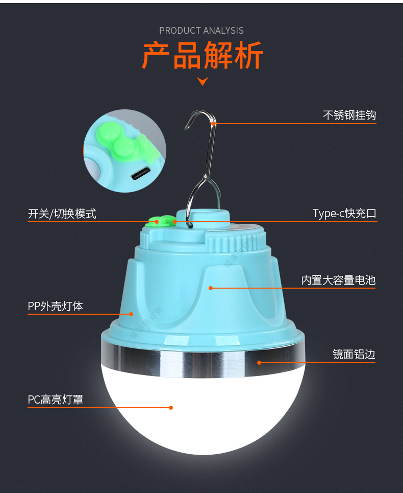 Led充電電球夜市出店野外キャンプ神器家庭用停電超亮防雨充電式緊急ランプ