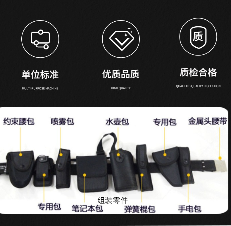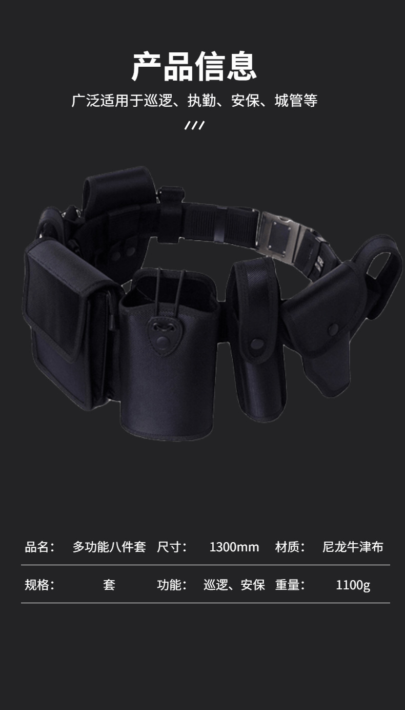 卸売りナイロン多機能八点セットウエストバッグ保安勤務パトロール訓練織り戸外警備男黒ベルト