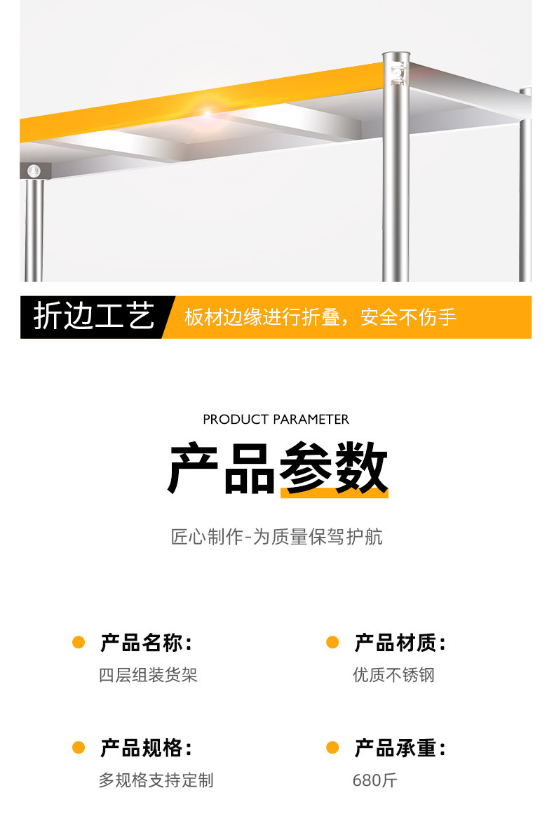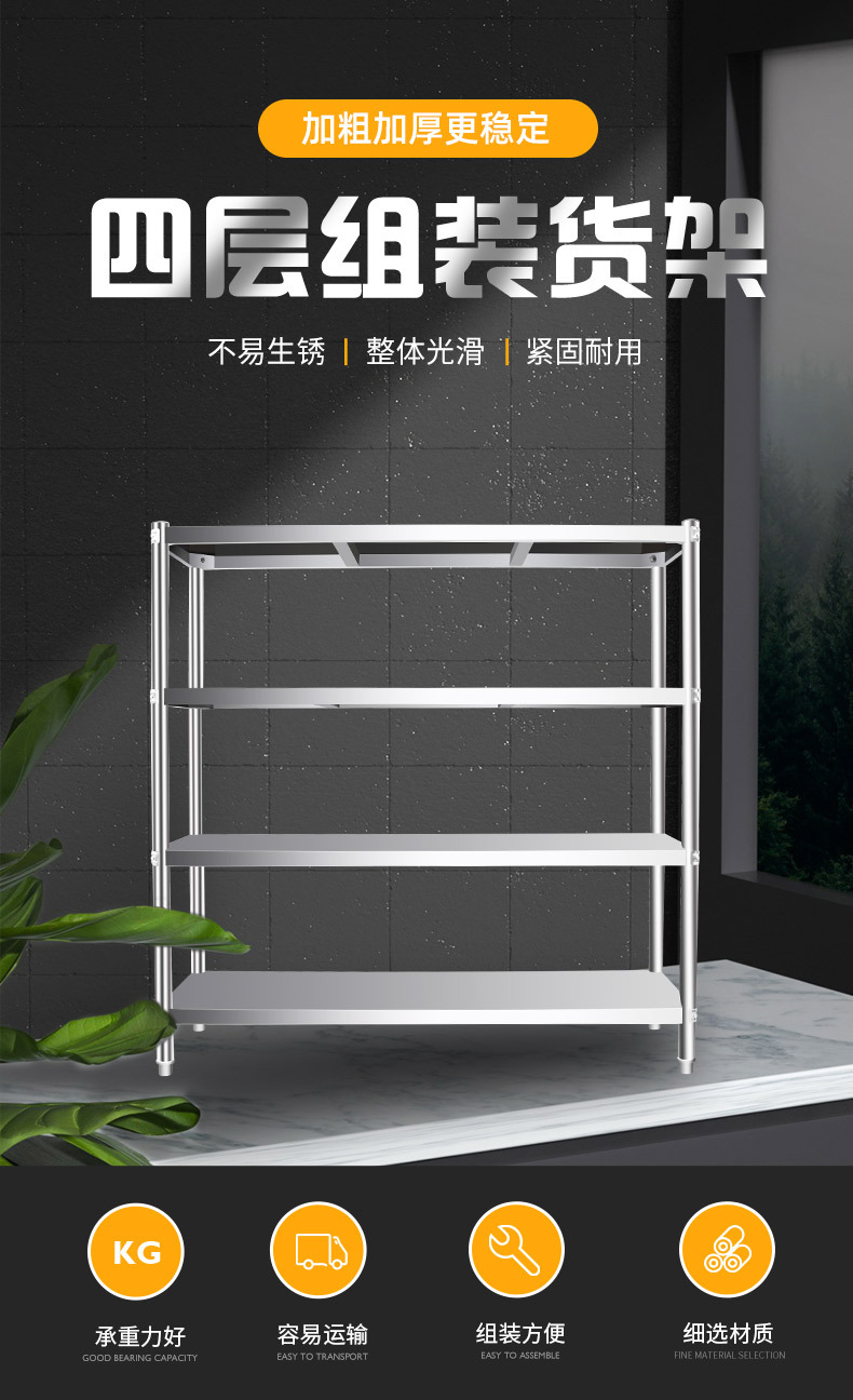 不锈钢货架厨房置物架落地多层收纳阳台微波炉储物架四层五层加厚