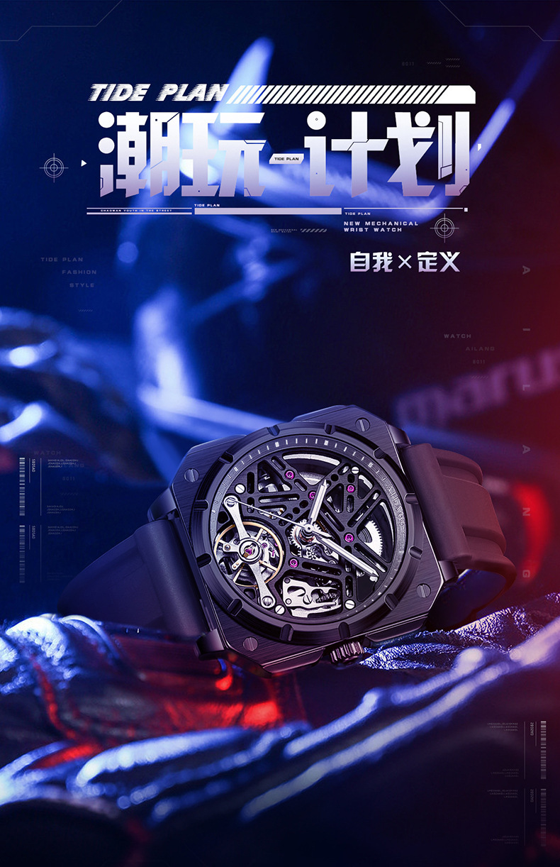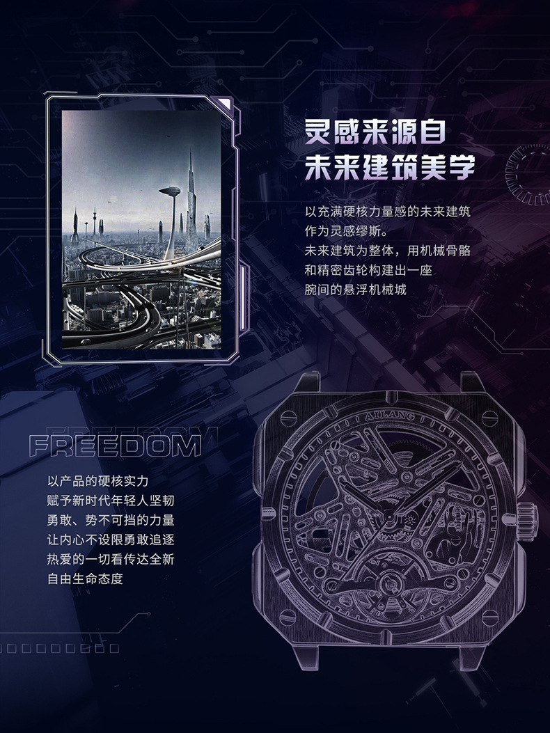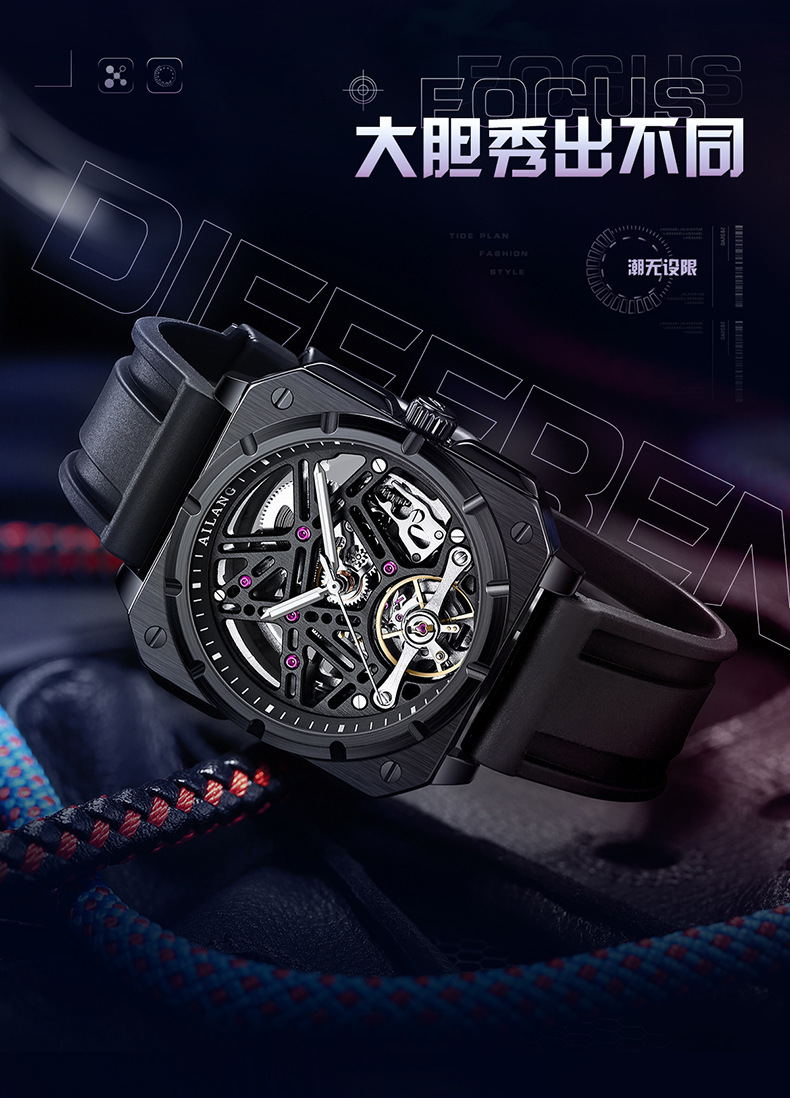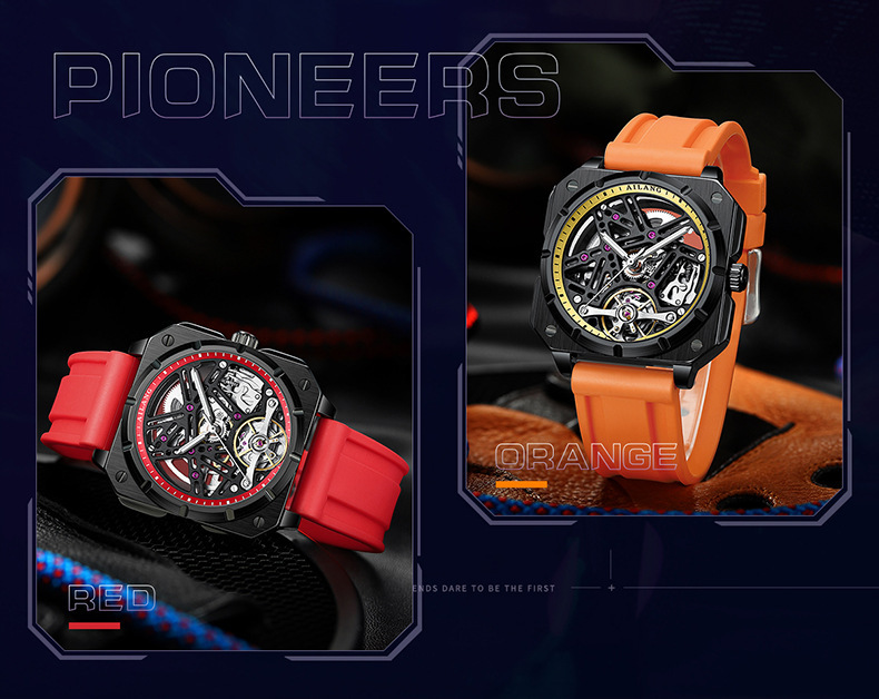 艾浪腕時計の男性の四角形のシリカゲルの全自動機械時計のブランドの防水のジャイロの透かし彫りの潮の男性の時計の十大