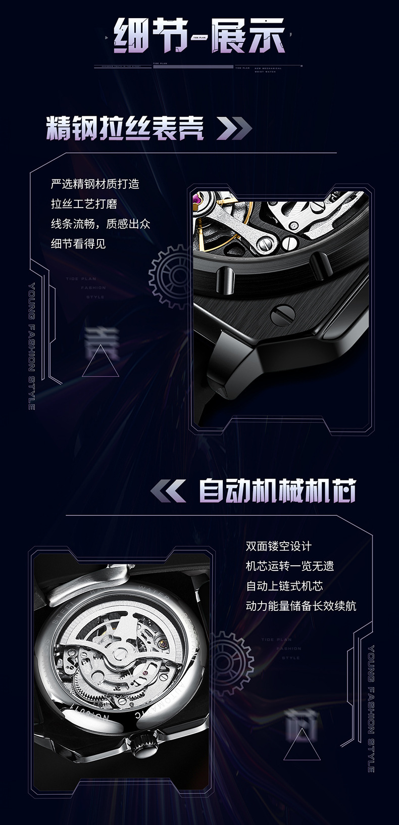 新型byino防水対外貿易機械時計男性腕時計夜光防水全透かし全自動シンプル卸売り