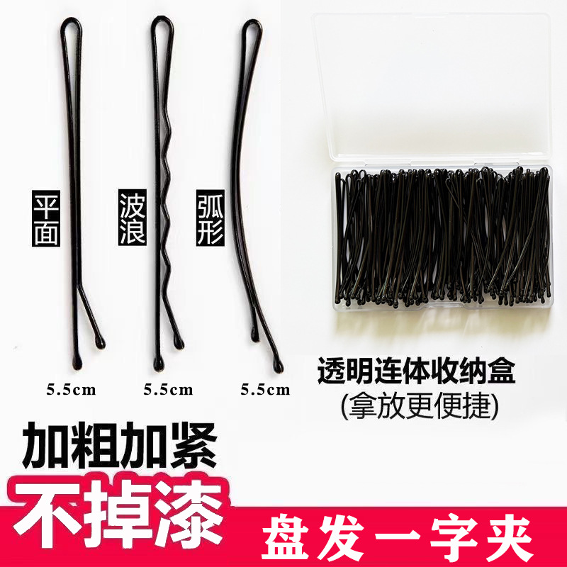 发夹一字夹黑色碎发夹子发卡边夹刘海夹侧夹小钢夹盘发固定夹盒装