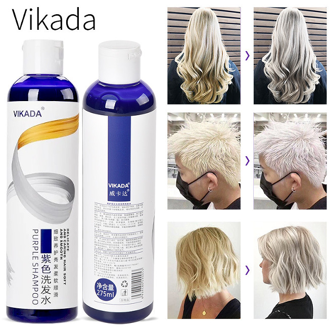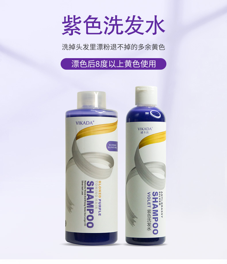 外贸VIKADA紫色去黄洗发水漂发移黄护色固色洗发水白金色祛黄色