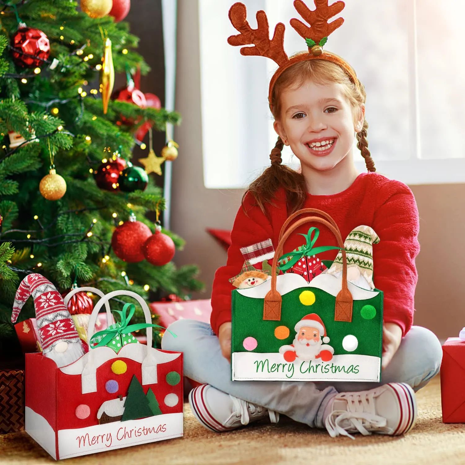 クロスボーダークリスマスフェルトギフトバッグ大容量不織布子供キャンディーバッグクリスマス漫画フェルトハンドバッグ