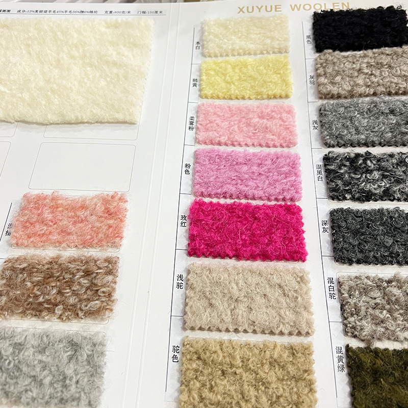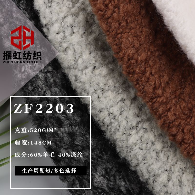 現物秋冬毛ポリエステルリングコート生地小香風パイルコート粗紡毛ウール生地