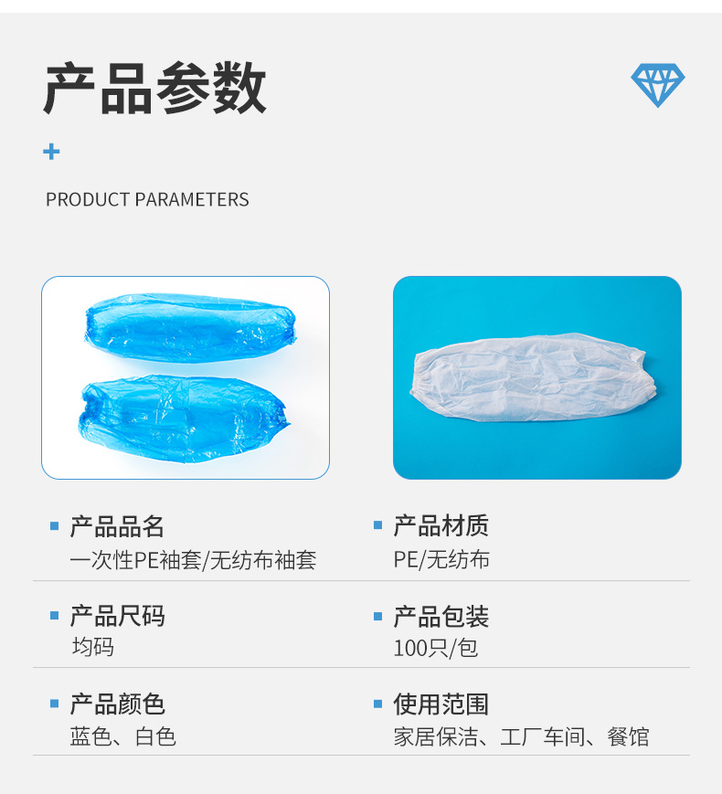 使い捨てpe袖カバー厚手ブルー透明pe口プラスチックカブカバー成人家庭用プラスチック防水袖