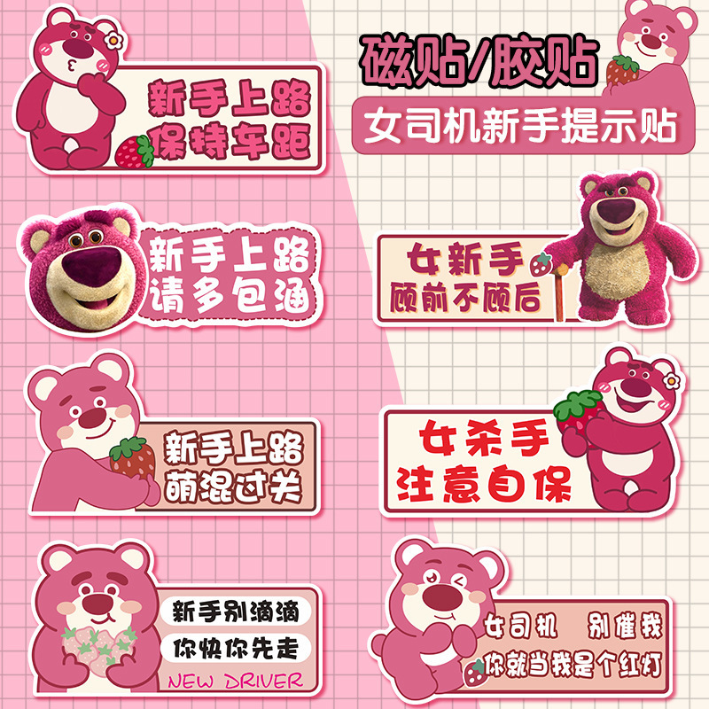 いちご熊新米女性運転手車貼り個性磁気貼り反射実習標識新米出発車装飾貼り