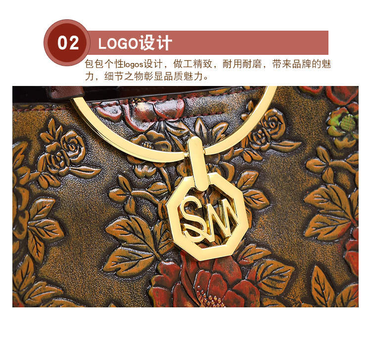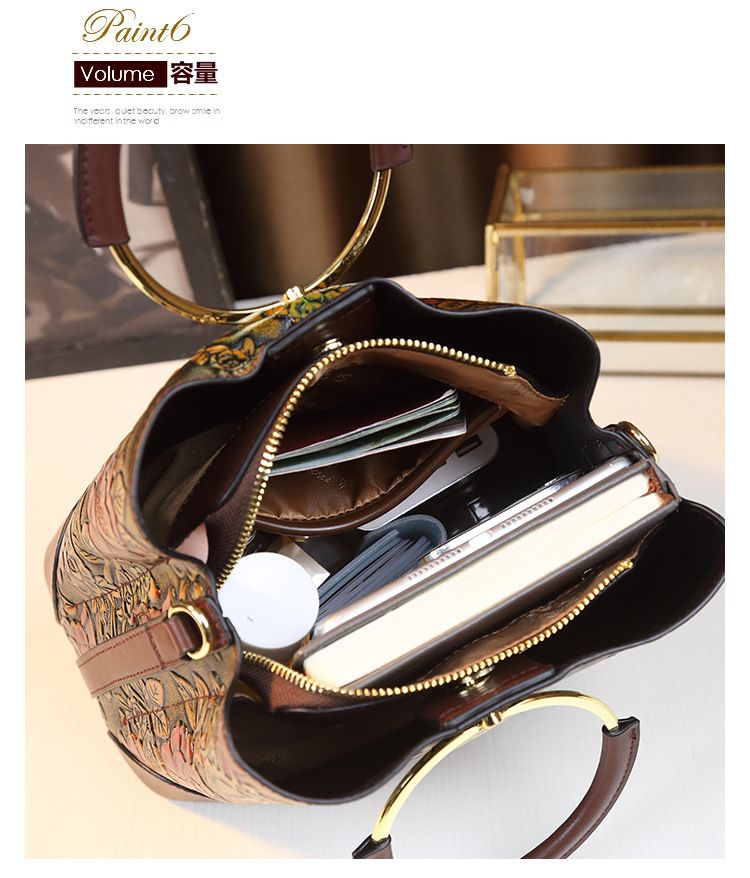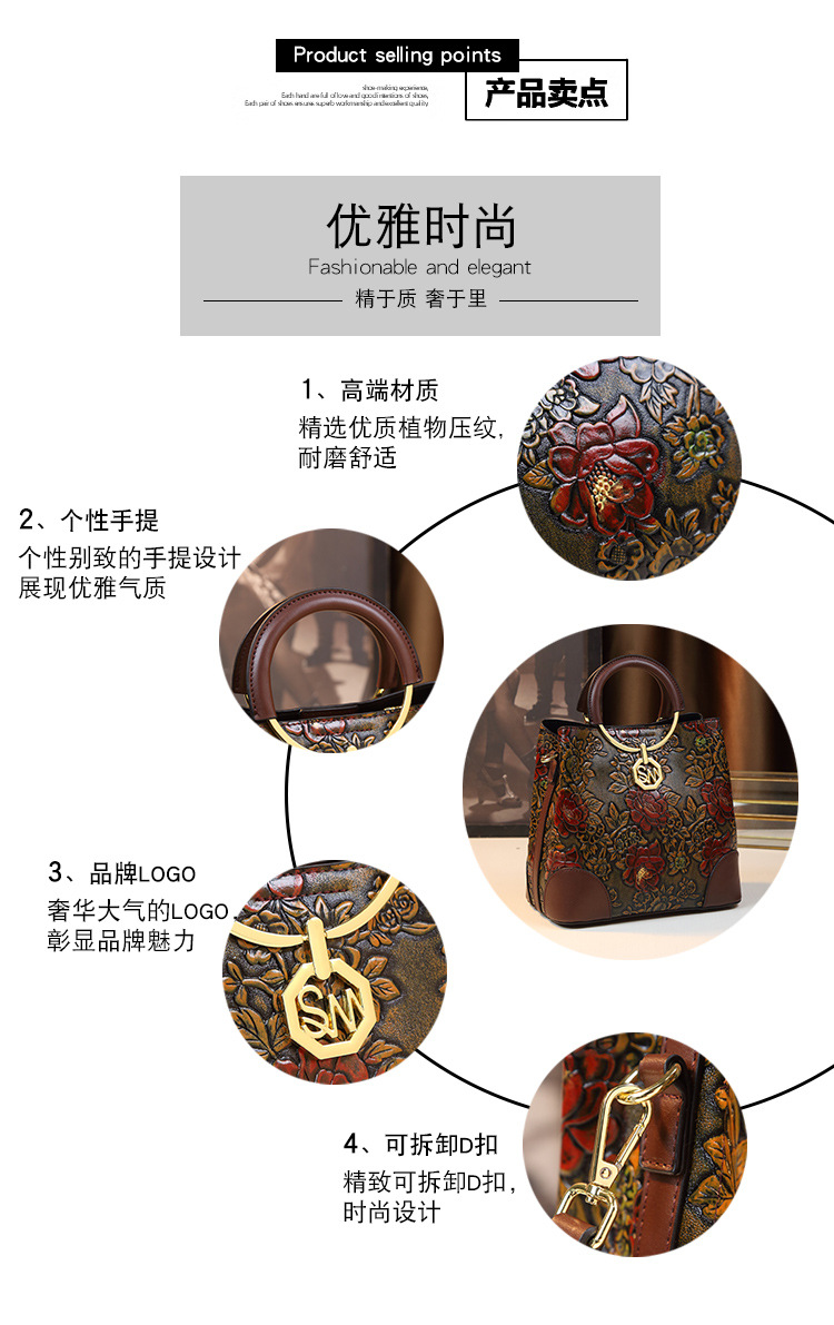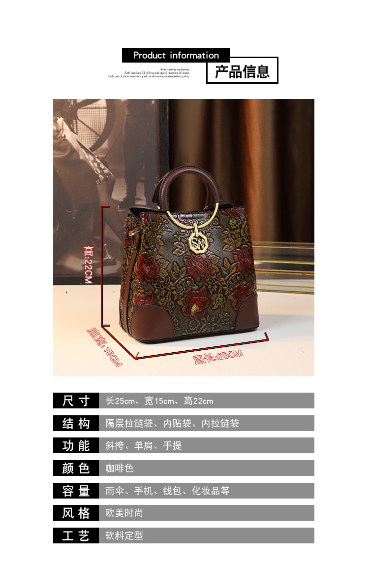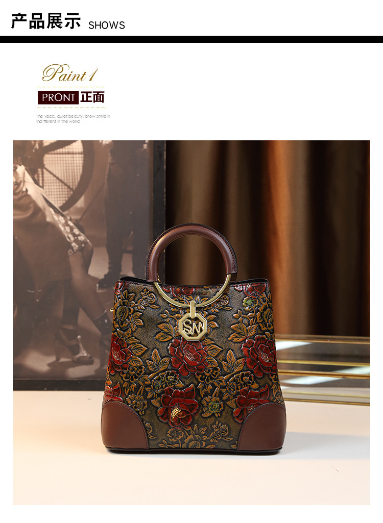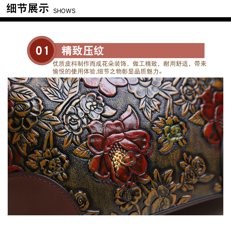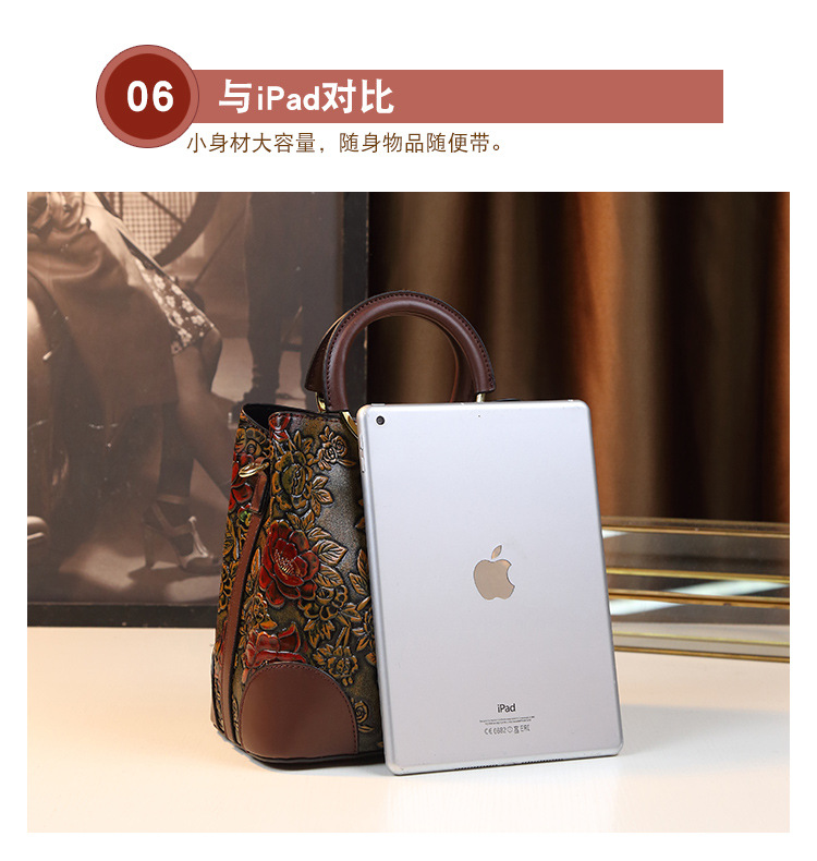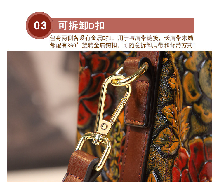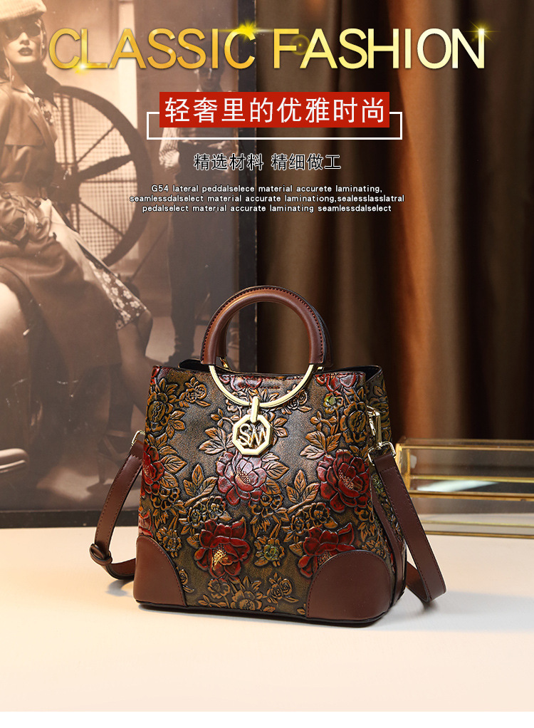 新しいエスニックスタイルの第一層牛革ショルダーバッグフラワーカジュアル多用途クロスボディレディースバッグ大容量レザー通勤バッグ