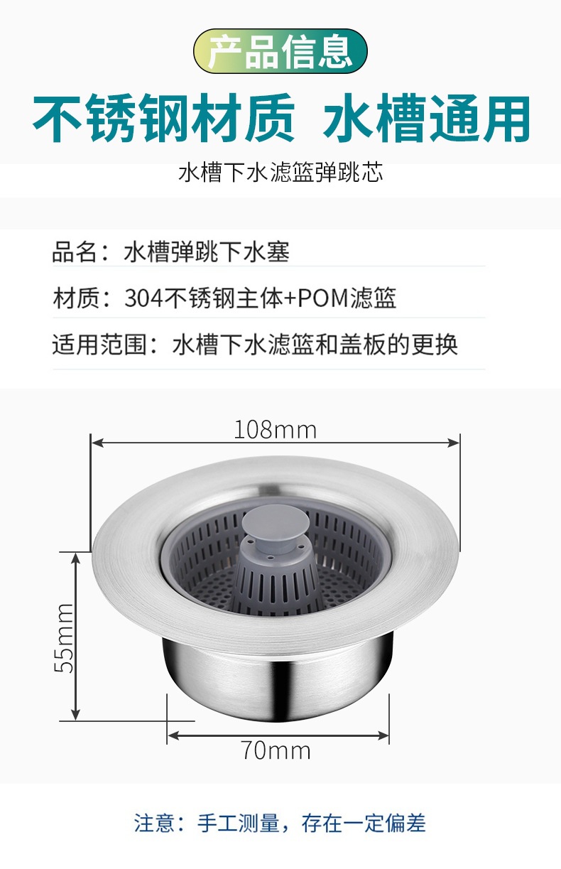 ステンレスキッチンシンク洗面器ろ過網排水栓洗面器汎用タイプ水槽バウンスコア下水器