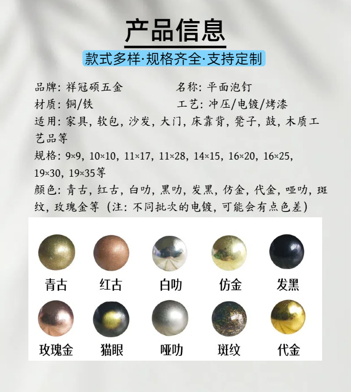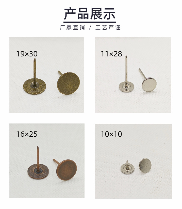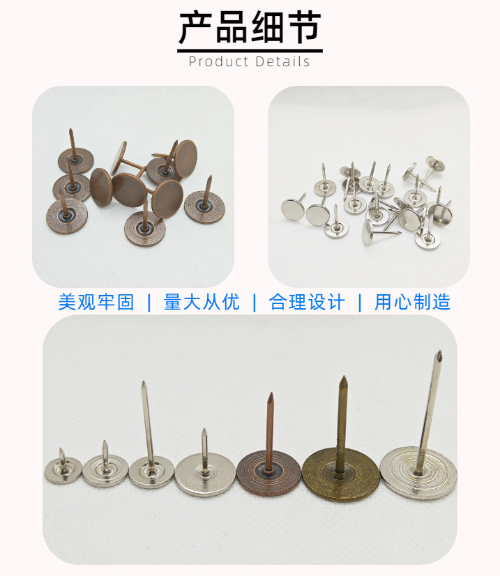 装飾用画鋲、平面鋲、ソファ用軟包・硬包銅鋲、大頭鋲、丸頭鋲、長頭鋲、平頭鋲卸売