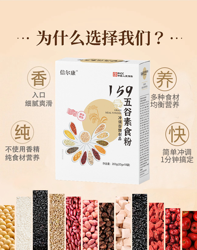 159代食粉、五穀全粒粉、ベジタリアンフルミール、栄養満点、満腹感、食事代替、断食粉、軽断食、カロリーコントロール、低脂肪