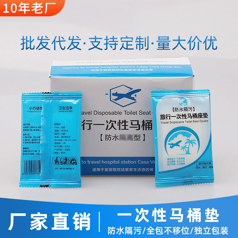 産地の使い捨てトイレマット旅行携帯プラスチック屋外ホテル便器セット単独包装
