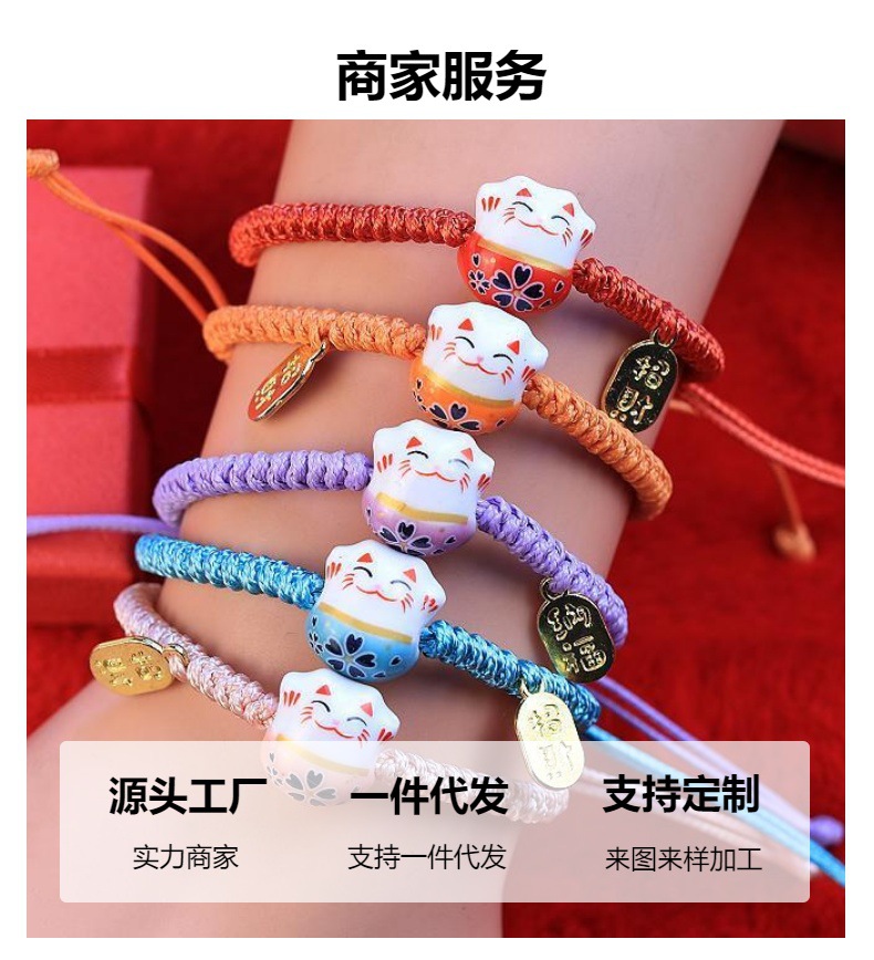 新商品の手編みの蝋紐アニメ招き猫陶磁器の縄は、親友の学生ネットの赤い生放送の商品の卸売りを送ります。
