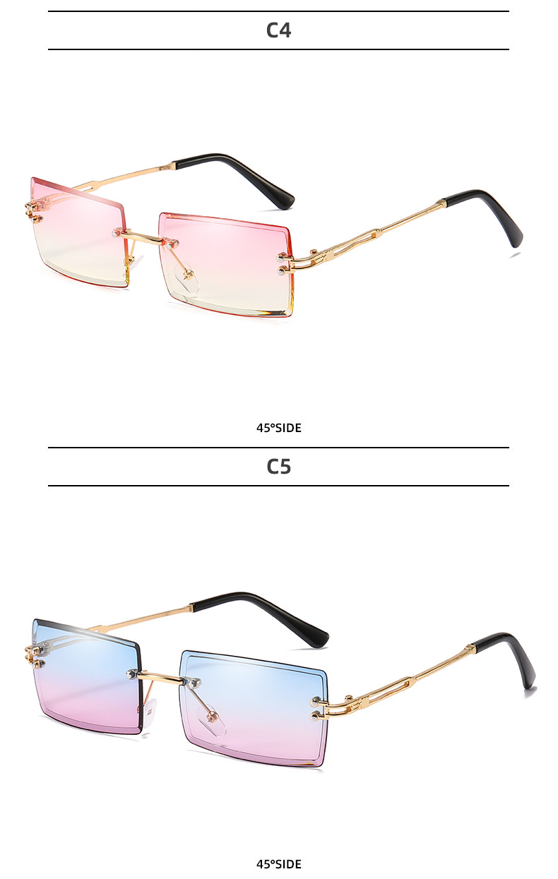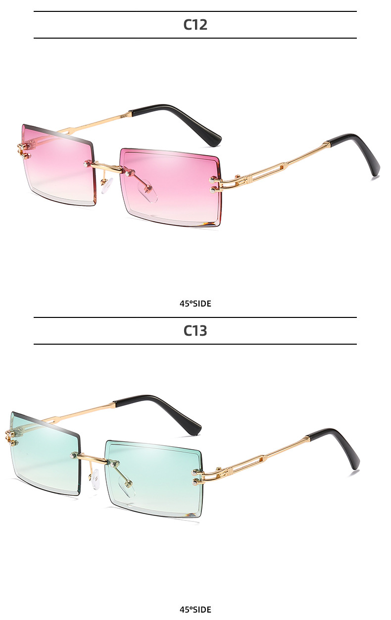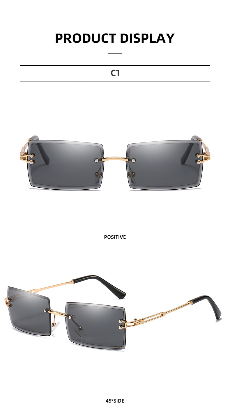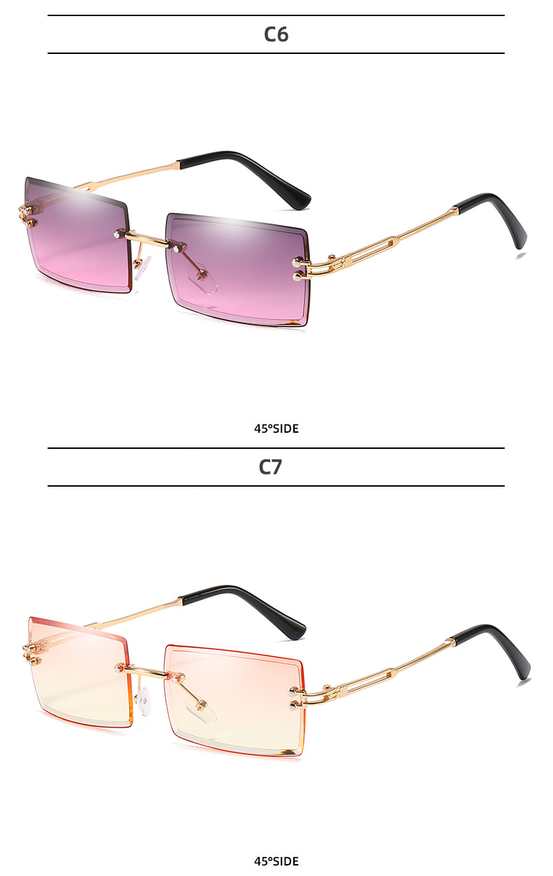 1966新型サングラスフレームレス街拍サングラスエッジカット角型サングラスファッション小眼鏡サングラスpc