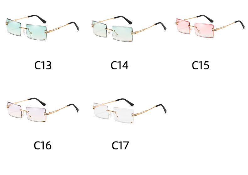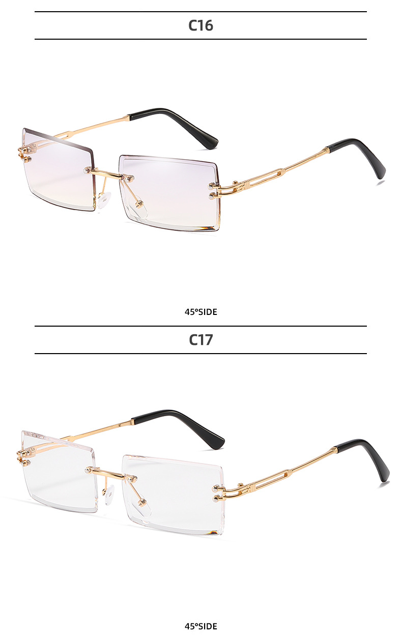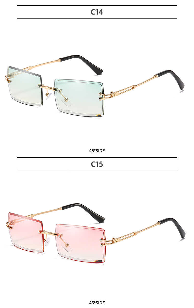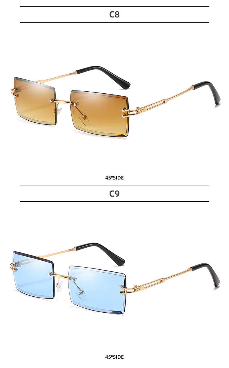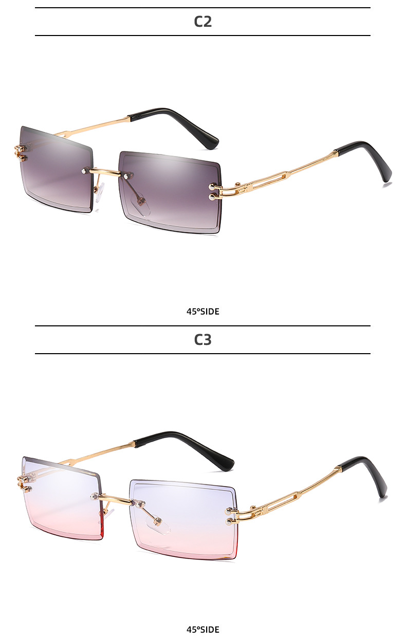 1966新型サングラスフレームレス街拍サングラスエッジカット角型サングラスファッション小眼鏡サングラスpc
