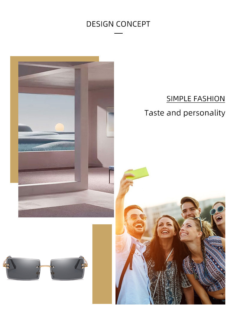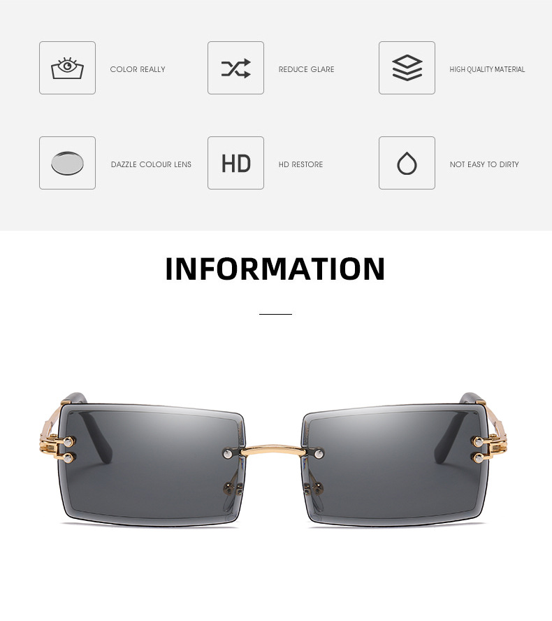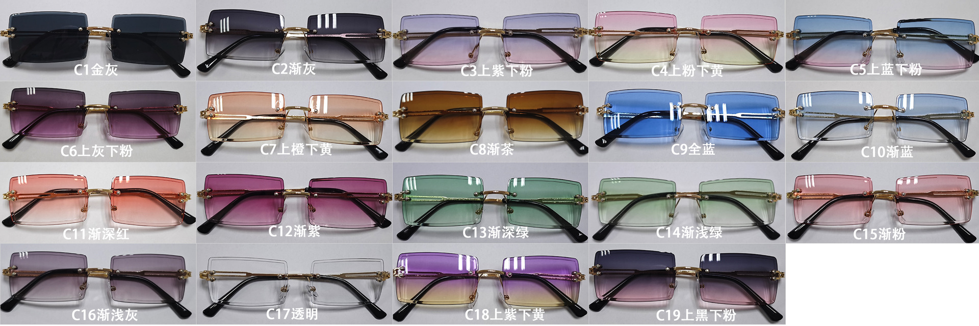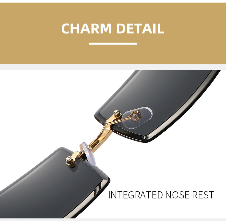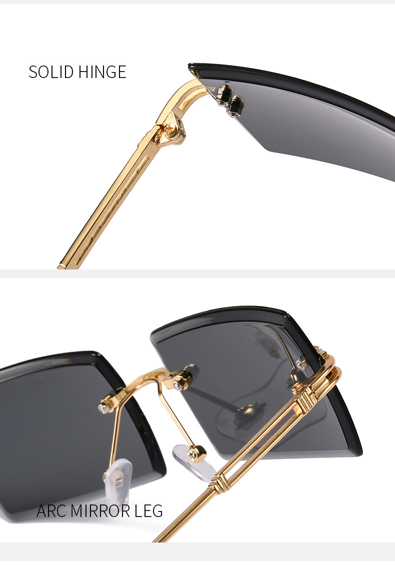 1966新型サングラスフレームレス街拍サングラスエッジカット角型サングラスファッション小眼鏡サングラスpc